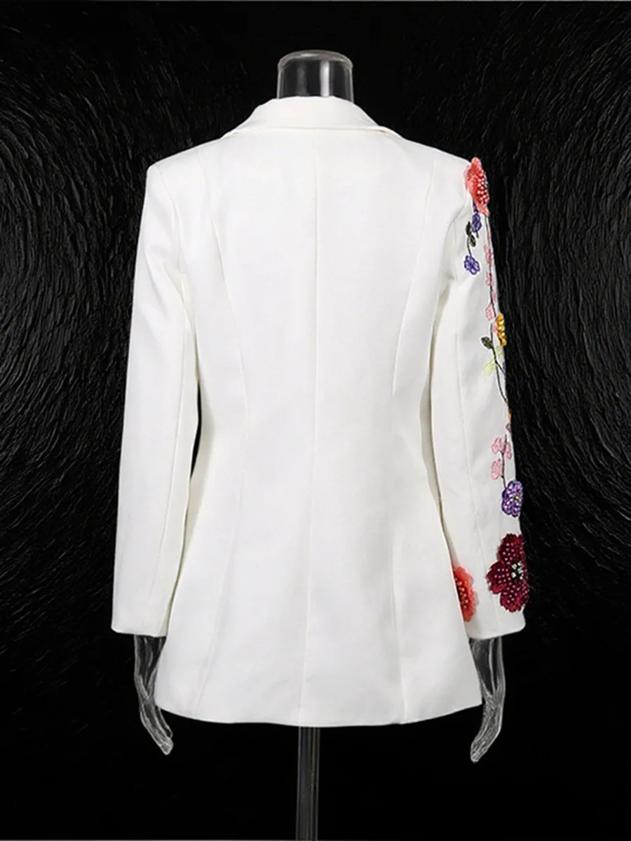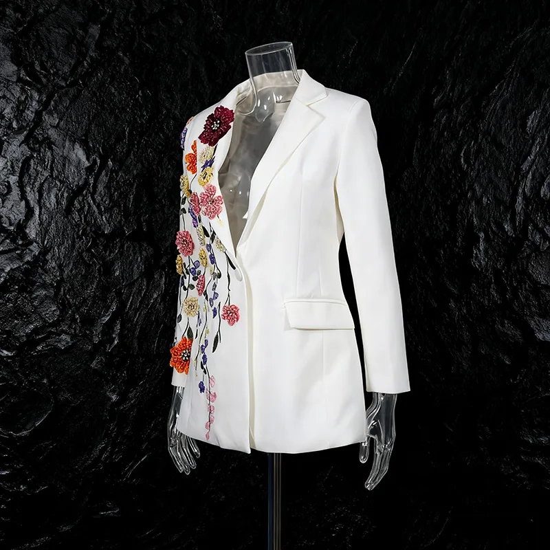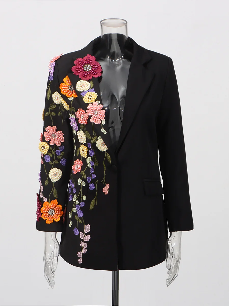 Luxury Floral Embroidered Blazer for Women Handmade Beaded Flower Appliqué Tailored Suit Jacket High Quality Crystal Blazer