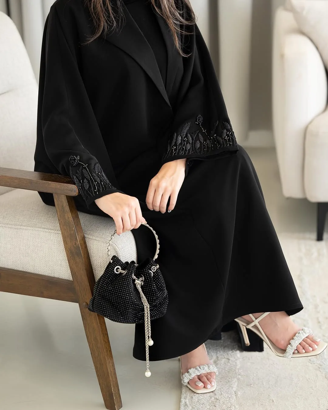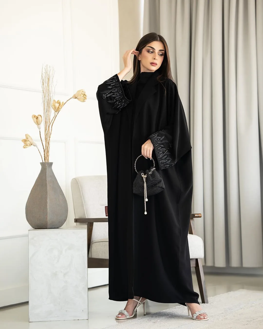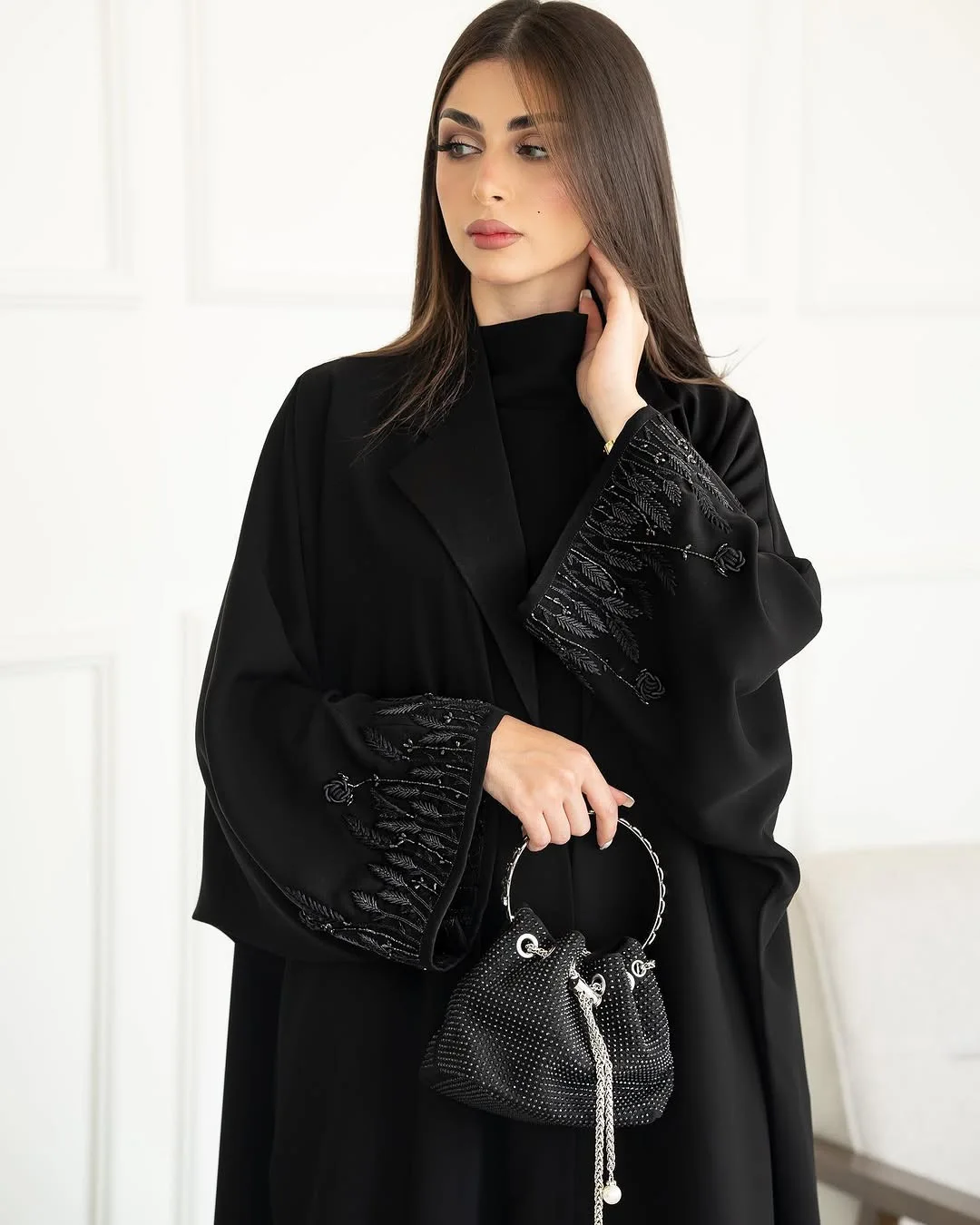 Oem Odm Suadi Dubai Modest Long Sleeve Fashion Muslim Women Open Abaya Custom Made Elegant OpenIntricate Embroidery and Beading