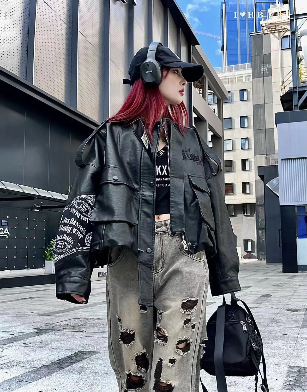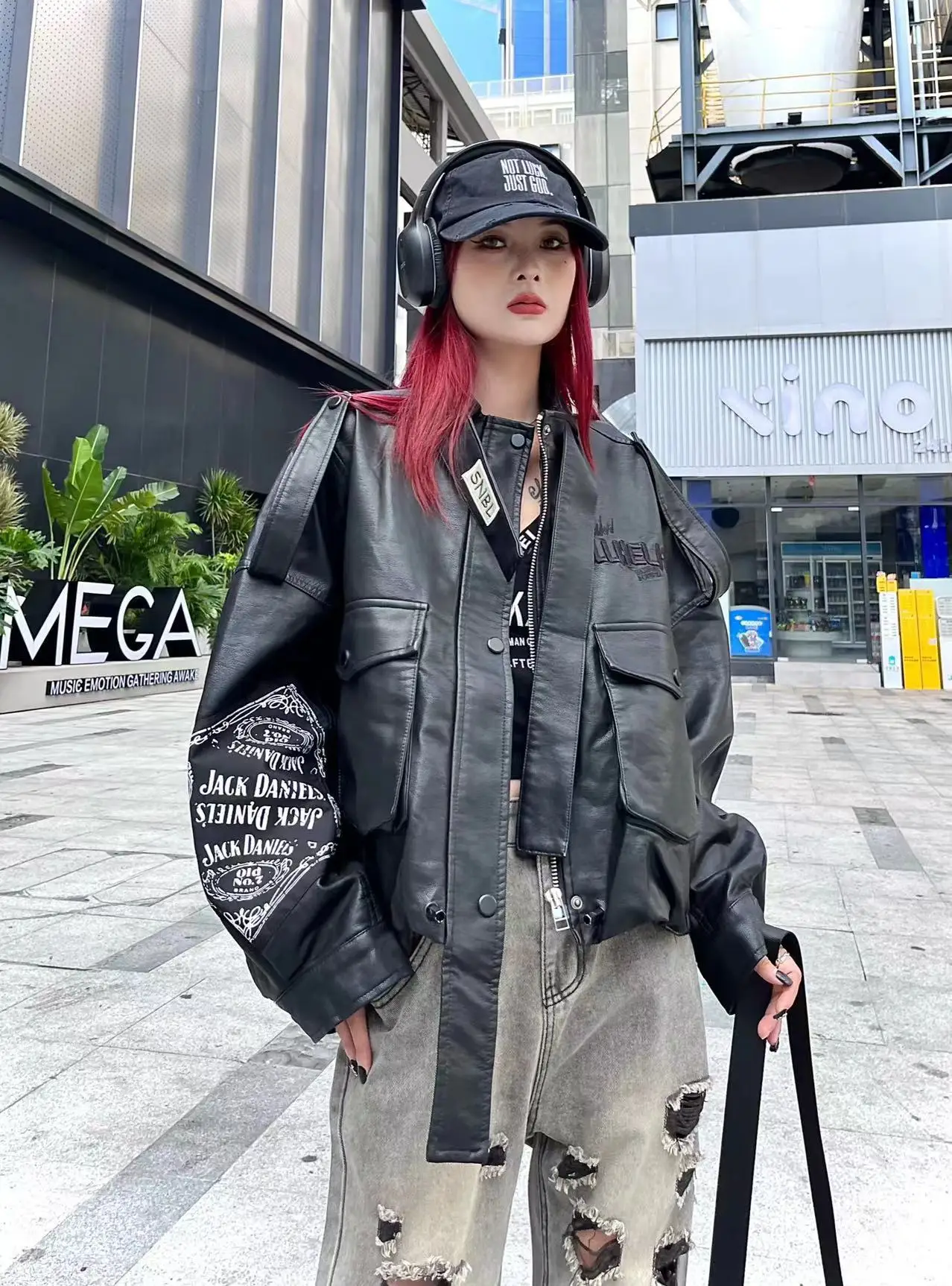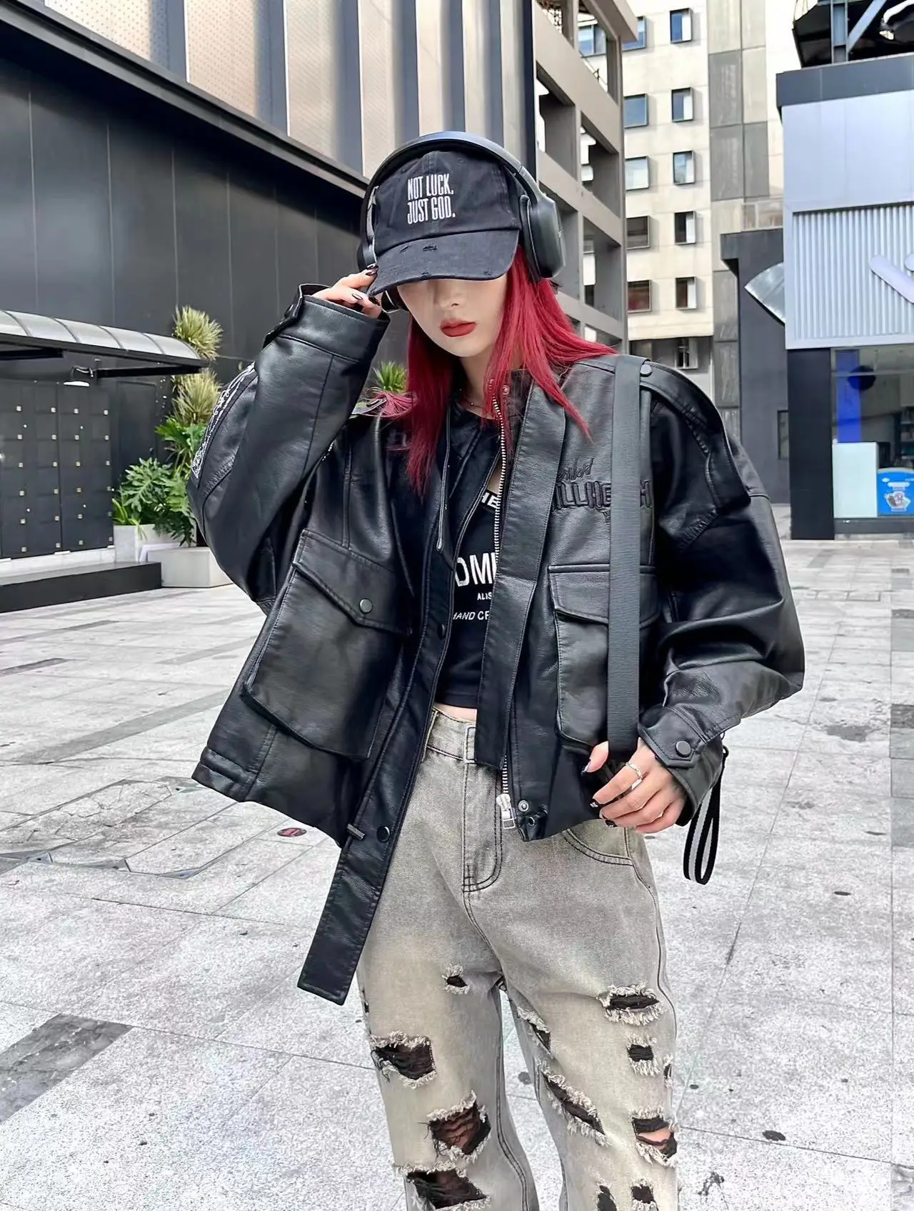 Oem Odm Women American Leather Bleached Embroidered Baseball Motorcycle Jacket Stylish Outerwear