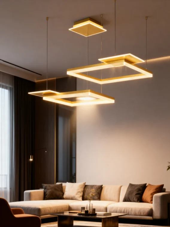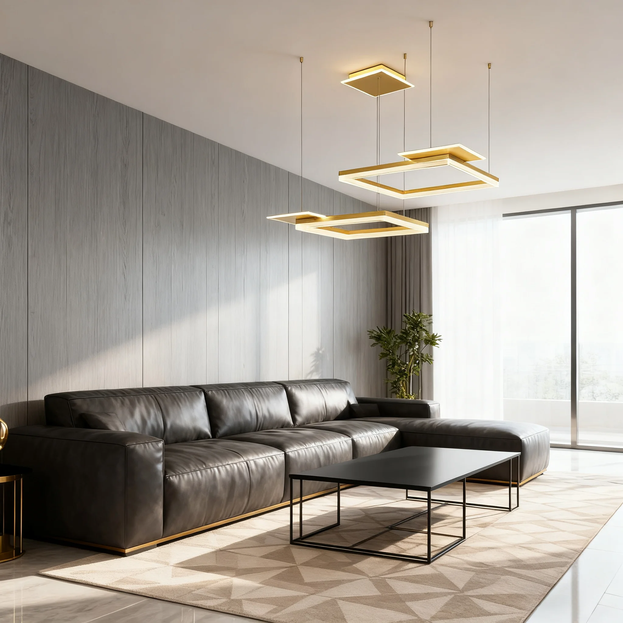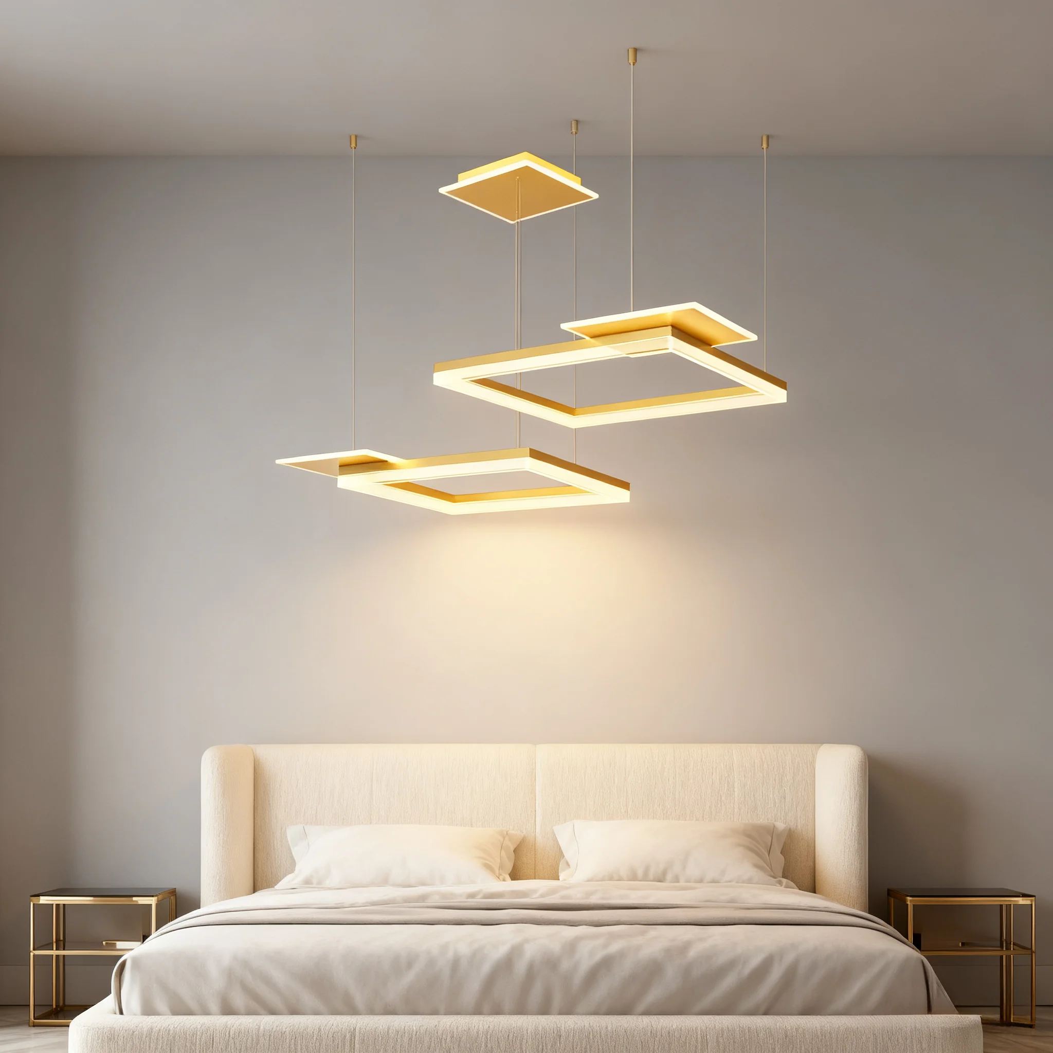 JACKSUN Gold Modern Led Chandelier Light Fixture 2 Ring Rectangular Contemporary Adj Square Pendant Light Living Room Dining