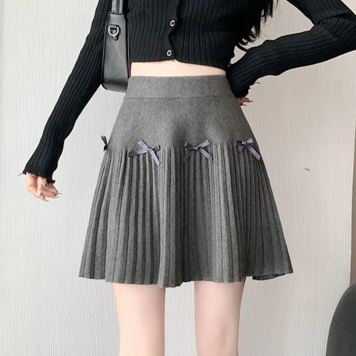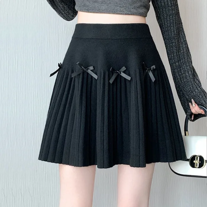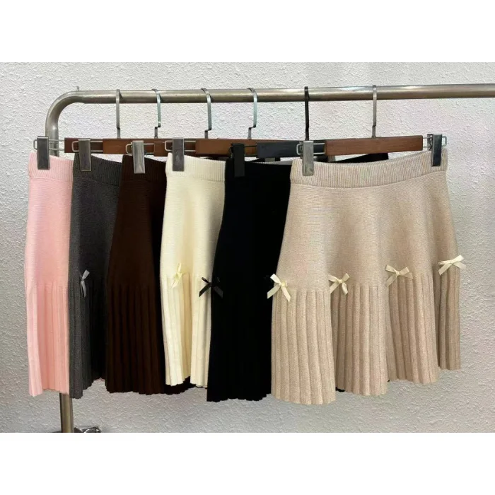 Knitted Breathable Satin Sweet Natural High-Waisted A-Line Knee-Length Pleated Women's Skirt