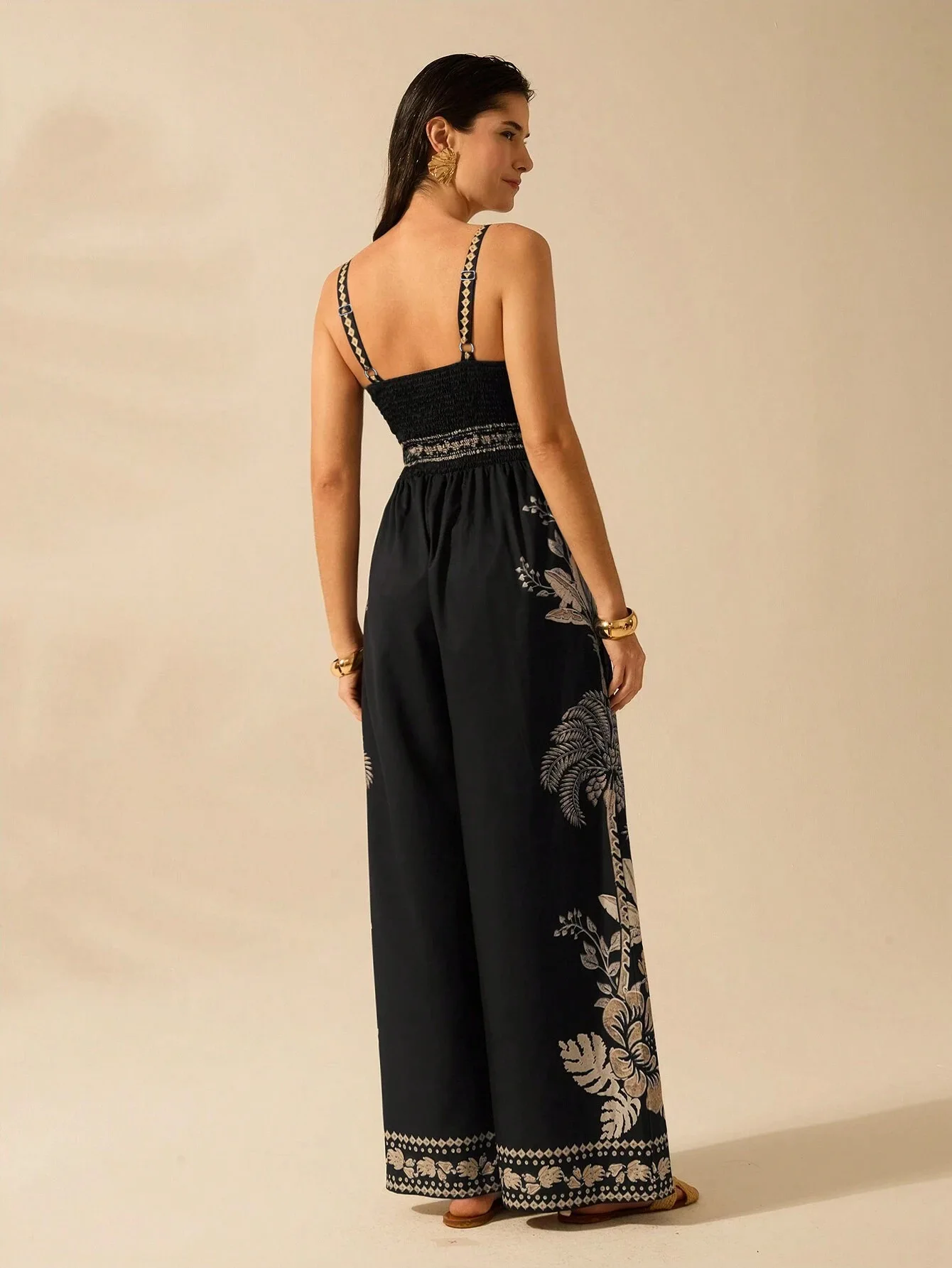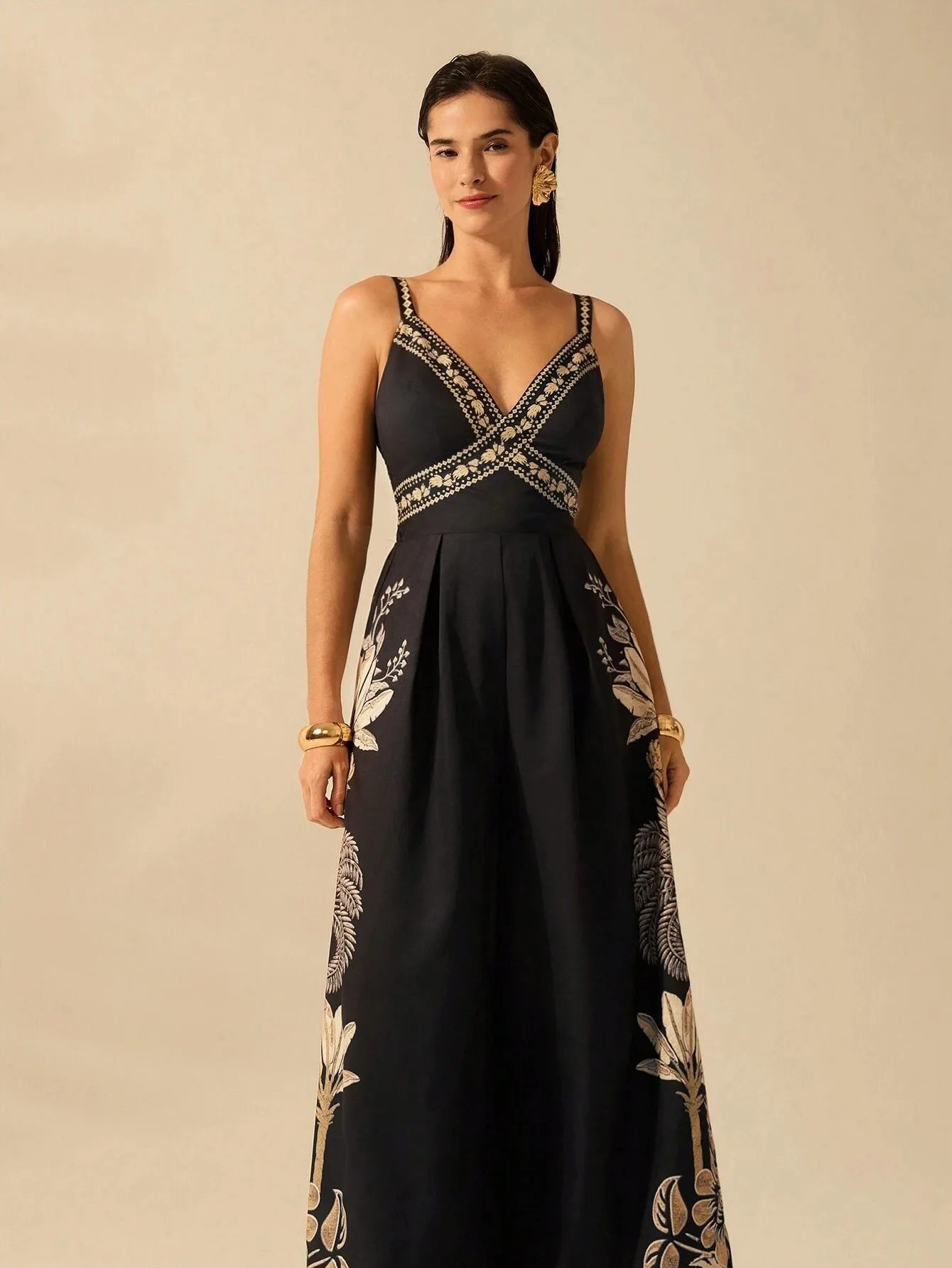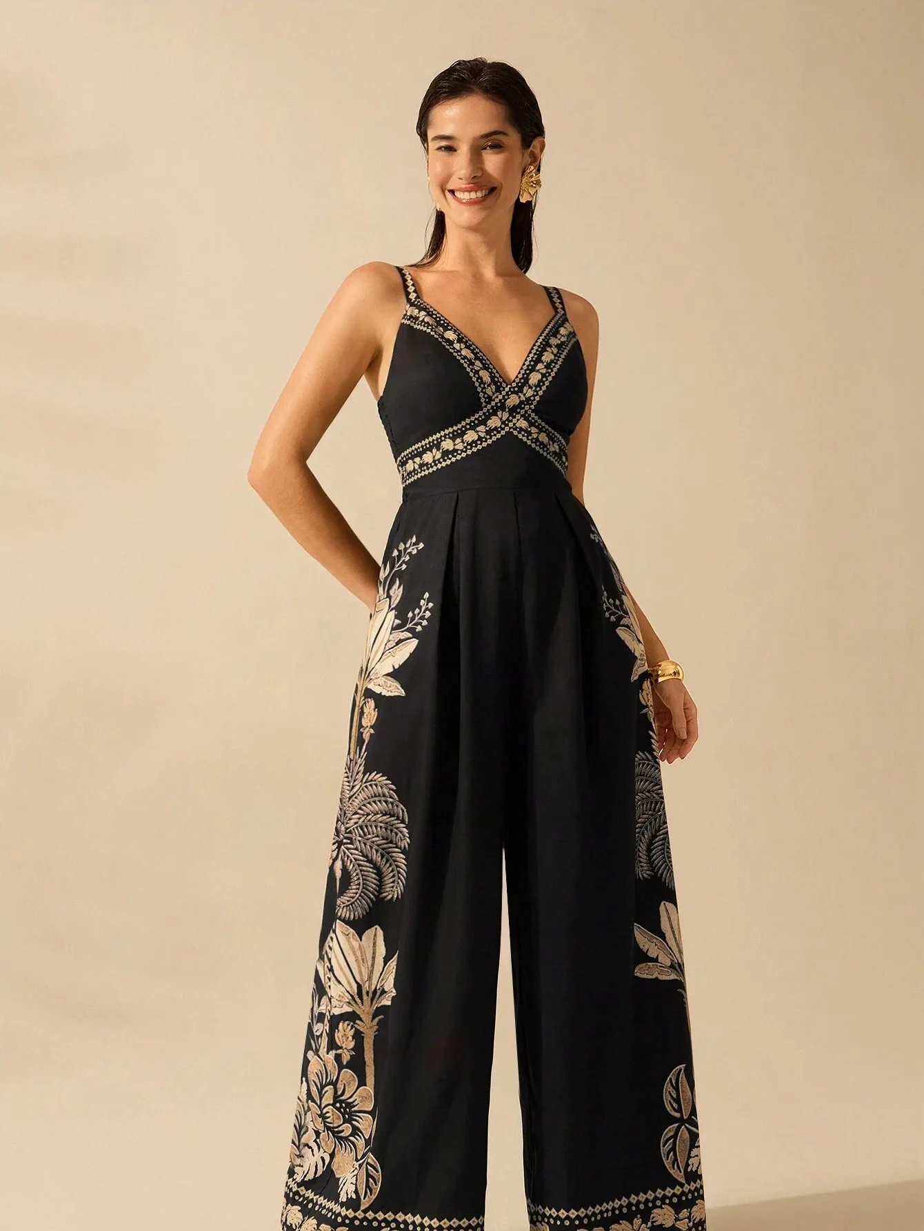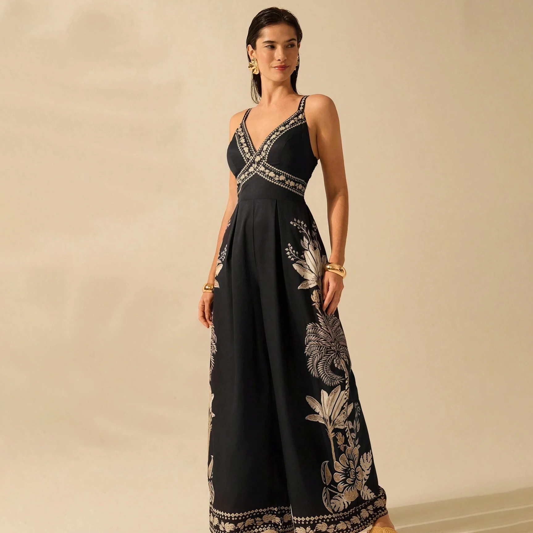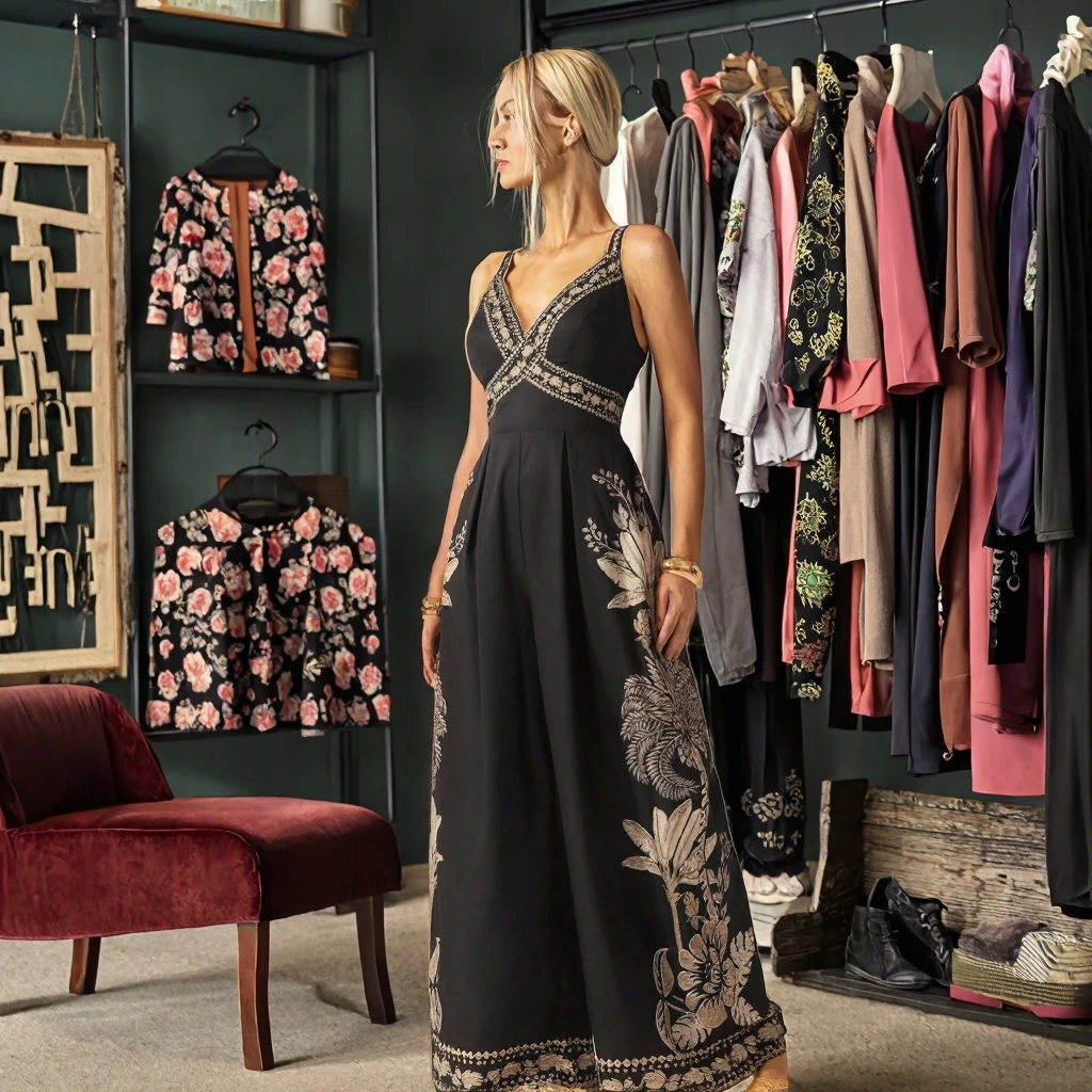 Vintage Empire Jumpsuit for Women V-Neck Tunic Casual Summer Print Vestidos Woven Maxi Length Custom Hoodies