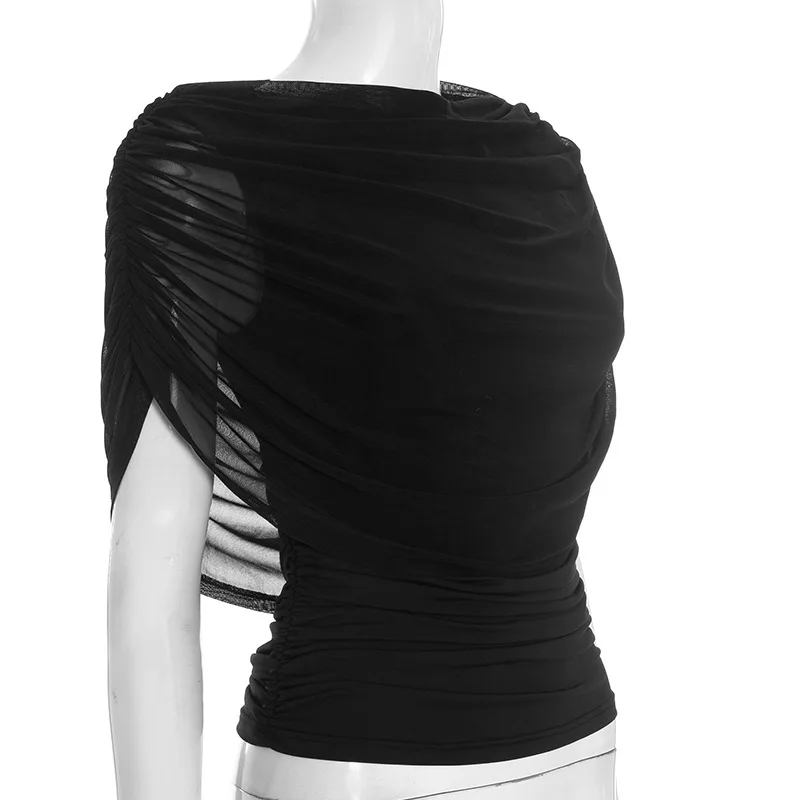 Viviblook J25TP439 Women's T-Shirt New Scarf Collar eated Sleeveless Slim Fit Women Casual Tops