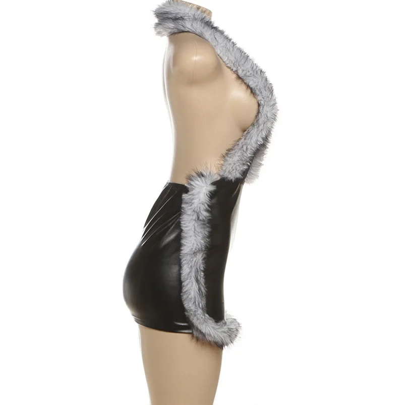 Viviblook Z927DS Sexy Streetwear Outfits New Autumn Winter Sexy Street Leather Sleeveless Halter Casual Mini Dresses for Women