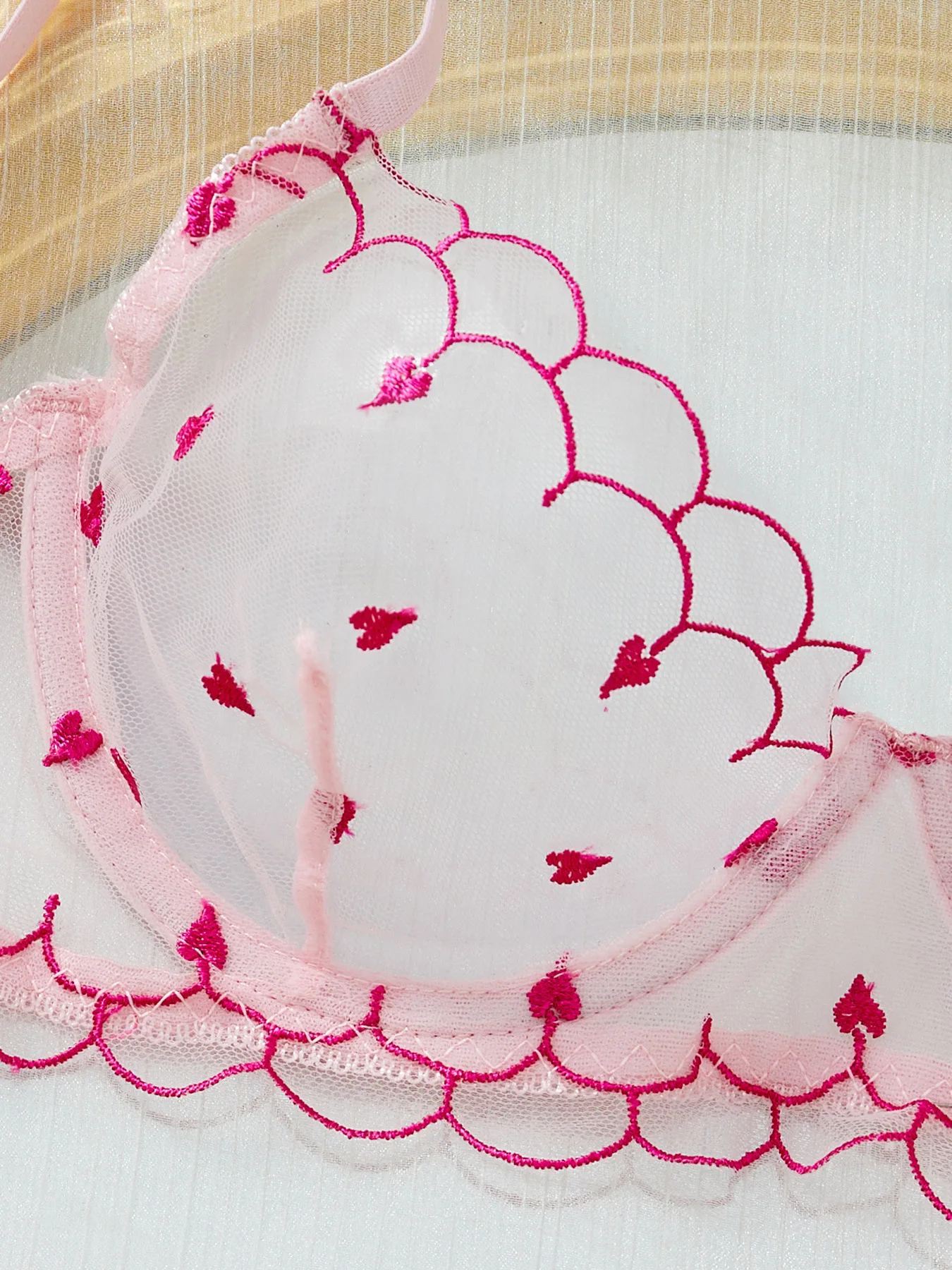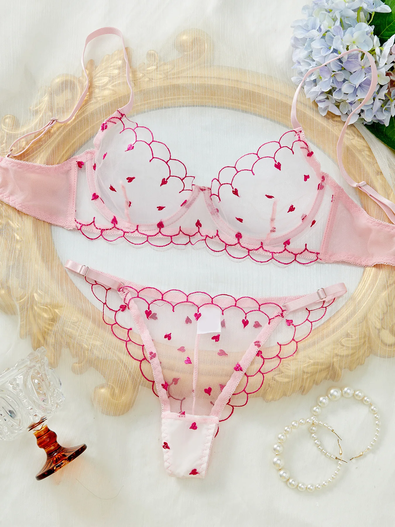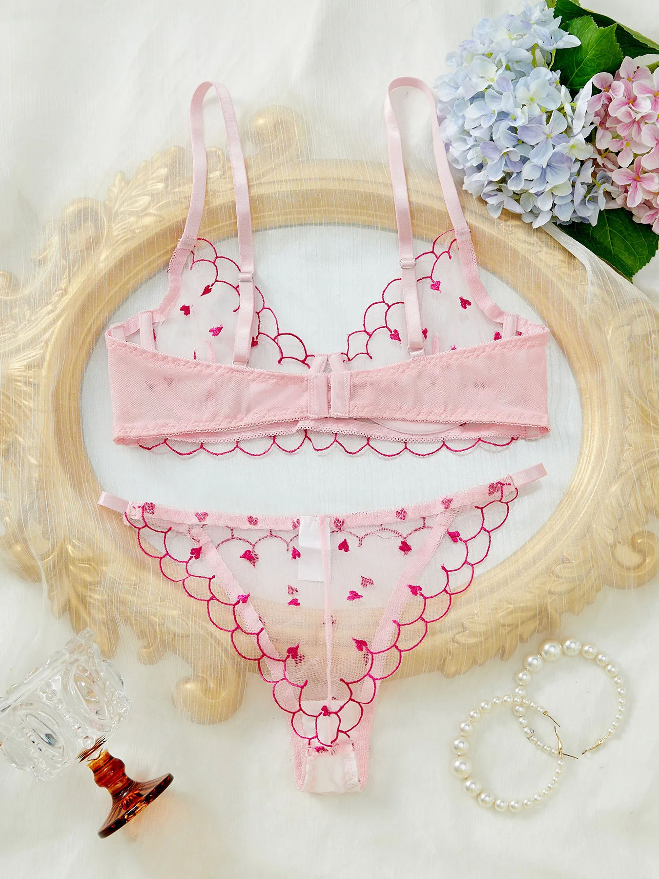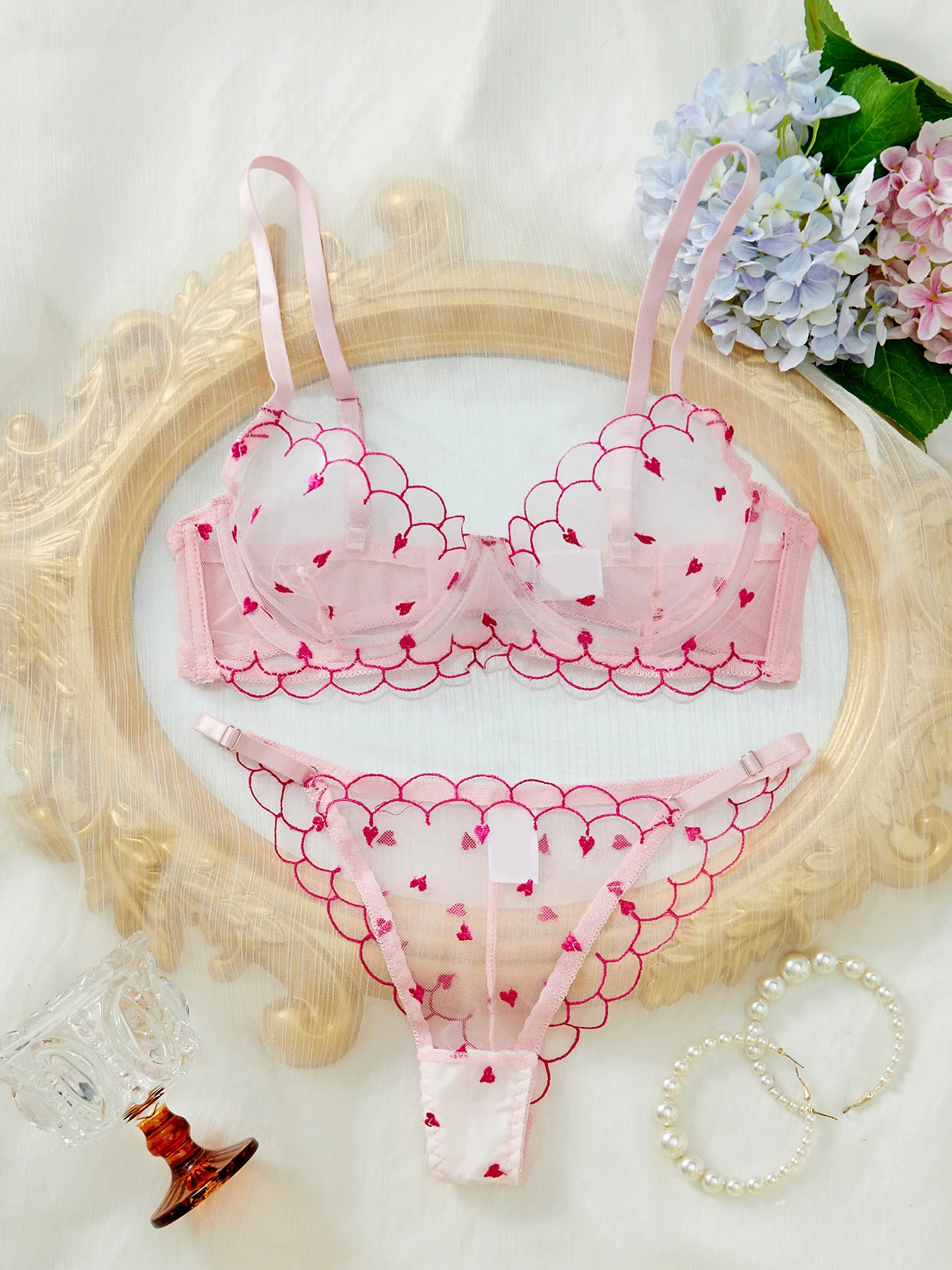 Brian Custom-Made European & American Style Lightweight Breathable Heart-Shaped Embroidered Mesh Sexy Lingerie Set
