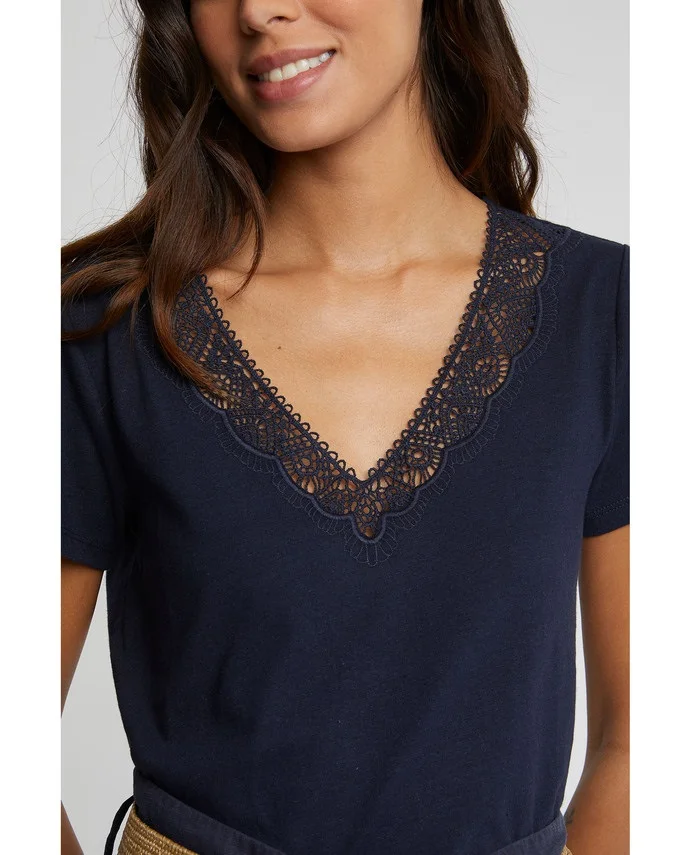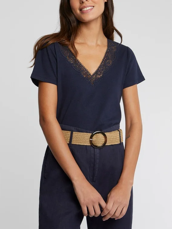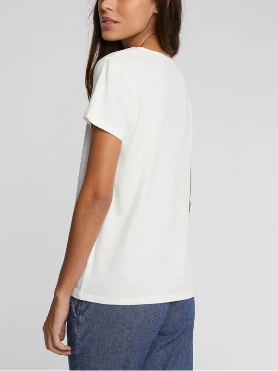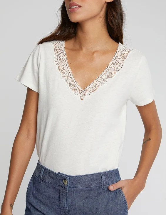 Ladies Embroidery v Neck Cotton and Linen Short Sleeve Top