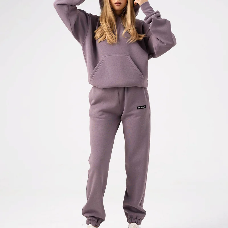 2023 Custom Women Tracksuit No Brand Thick Heavy Pullover Hoodie Set Jackets with Sweatpants for Portugal
