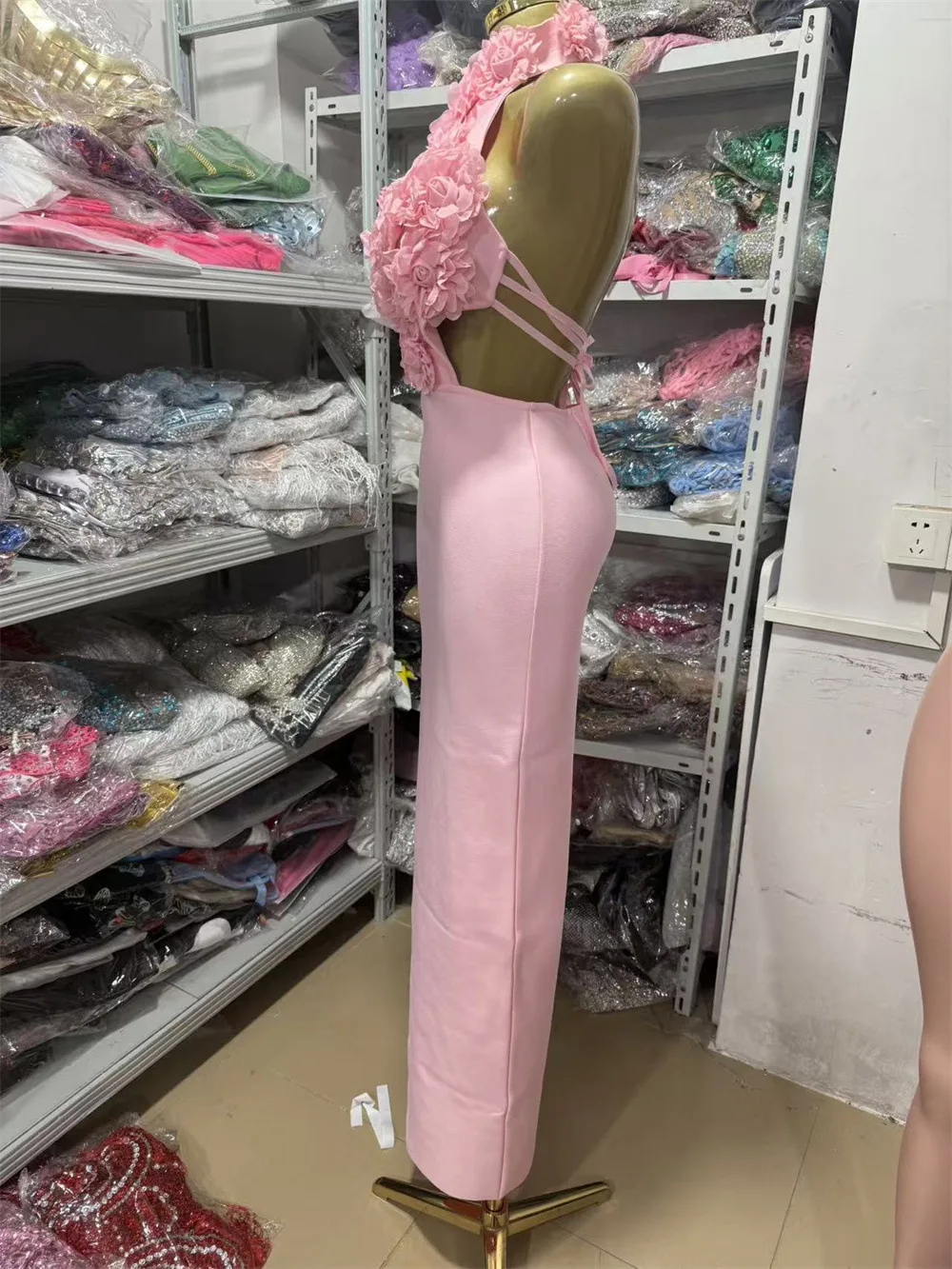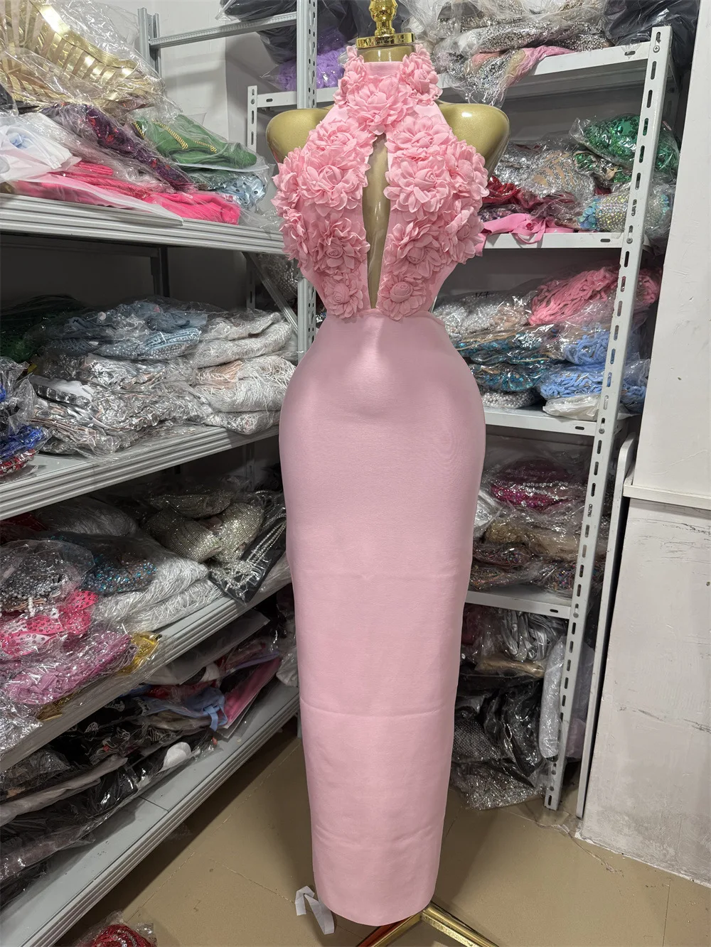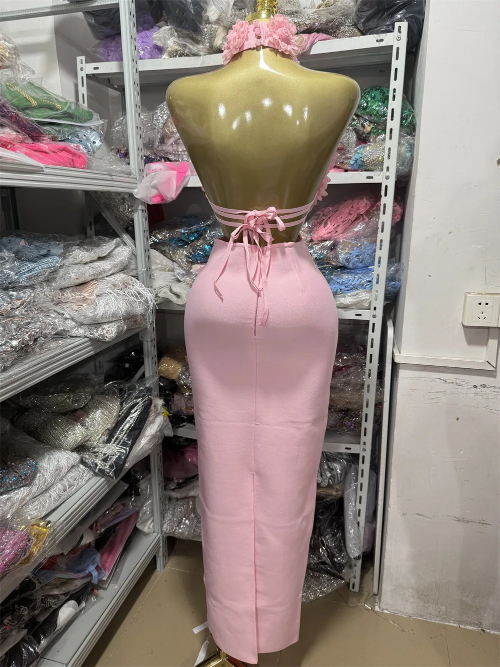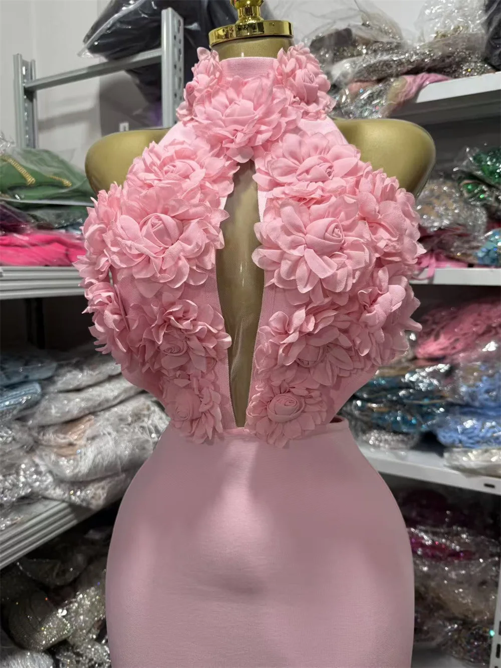 GX91611 Luxury Quality Women Boutique Sleeveless Bandage 3D Floral Cut-Out Long Dress Sexy Party Backless Evening Maxi Dresses