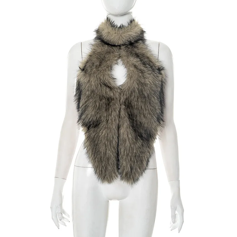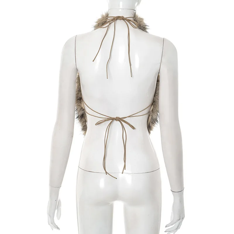 GX25269 Fashion Women Sweet Sexy Street Wear Blouse Halter Plush Hollow Out Ladies Vest Unique Irregular Backless Tank Tops