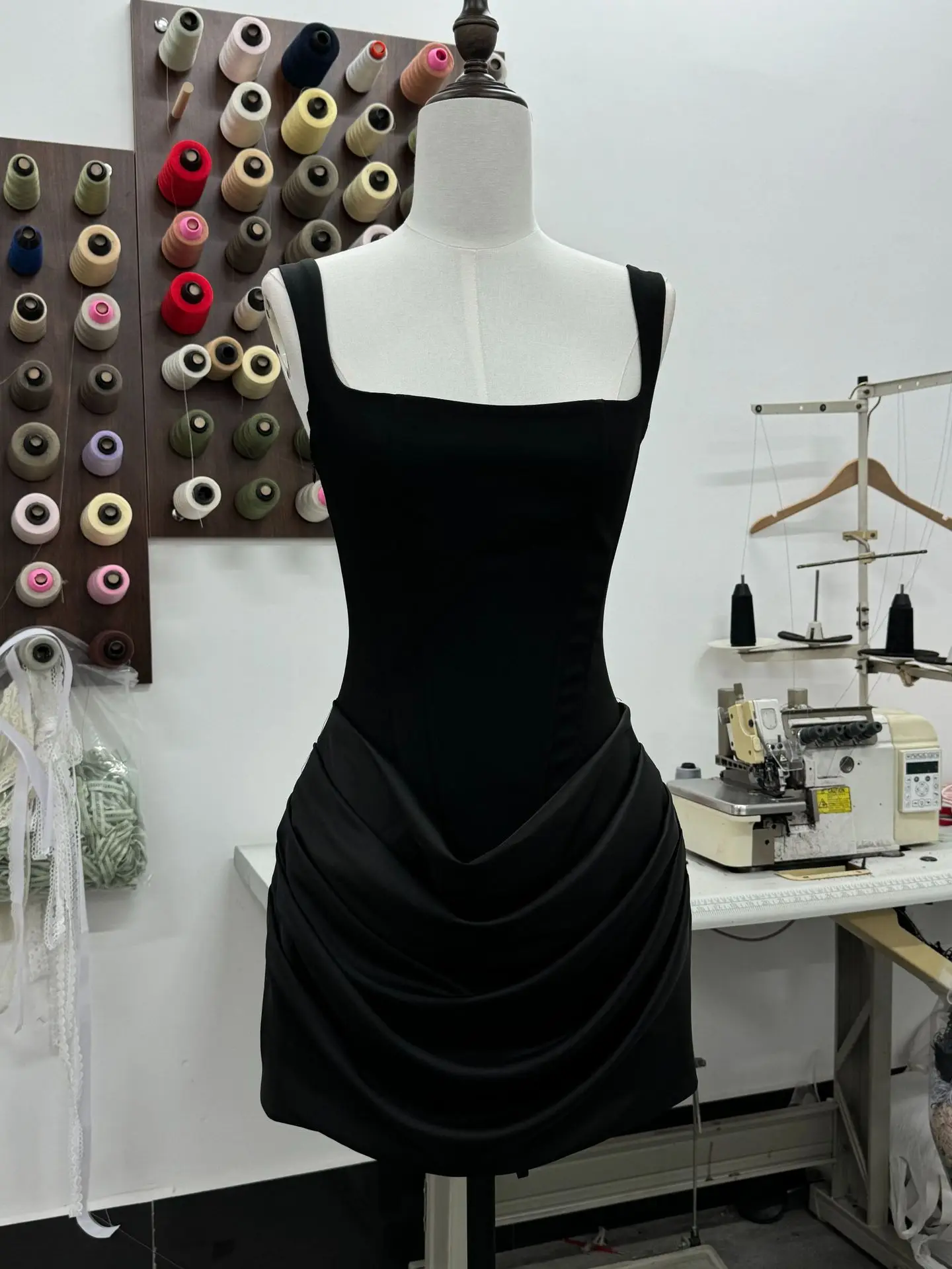 GX8801A Luxury Quality 2026 Women Sexy Sleeveless Square Neck Party Pleated Dress Slim Fit Unique Evening Lace-up Mini Dresses