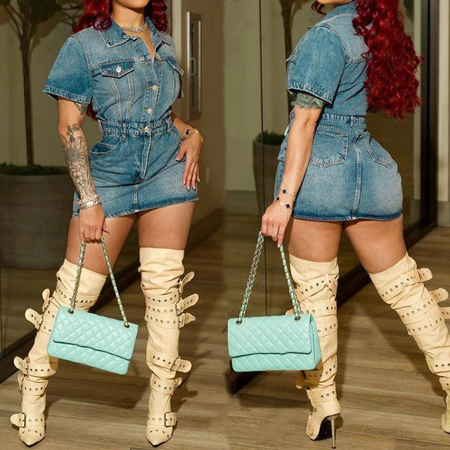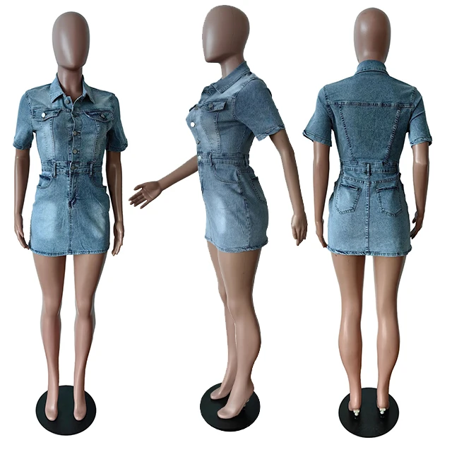 GX8540 Fashion 2026 New Women Short Sleeve Denim Mini Dress Summer Stretchy Elegant Jeans Casual Dresses