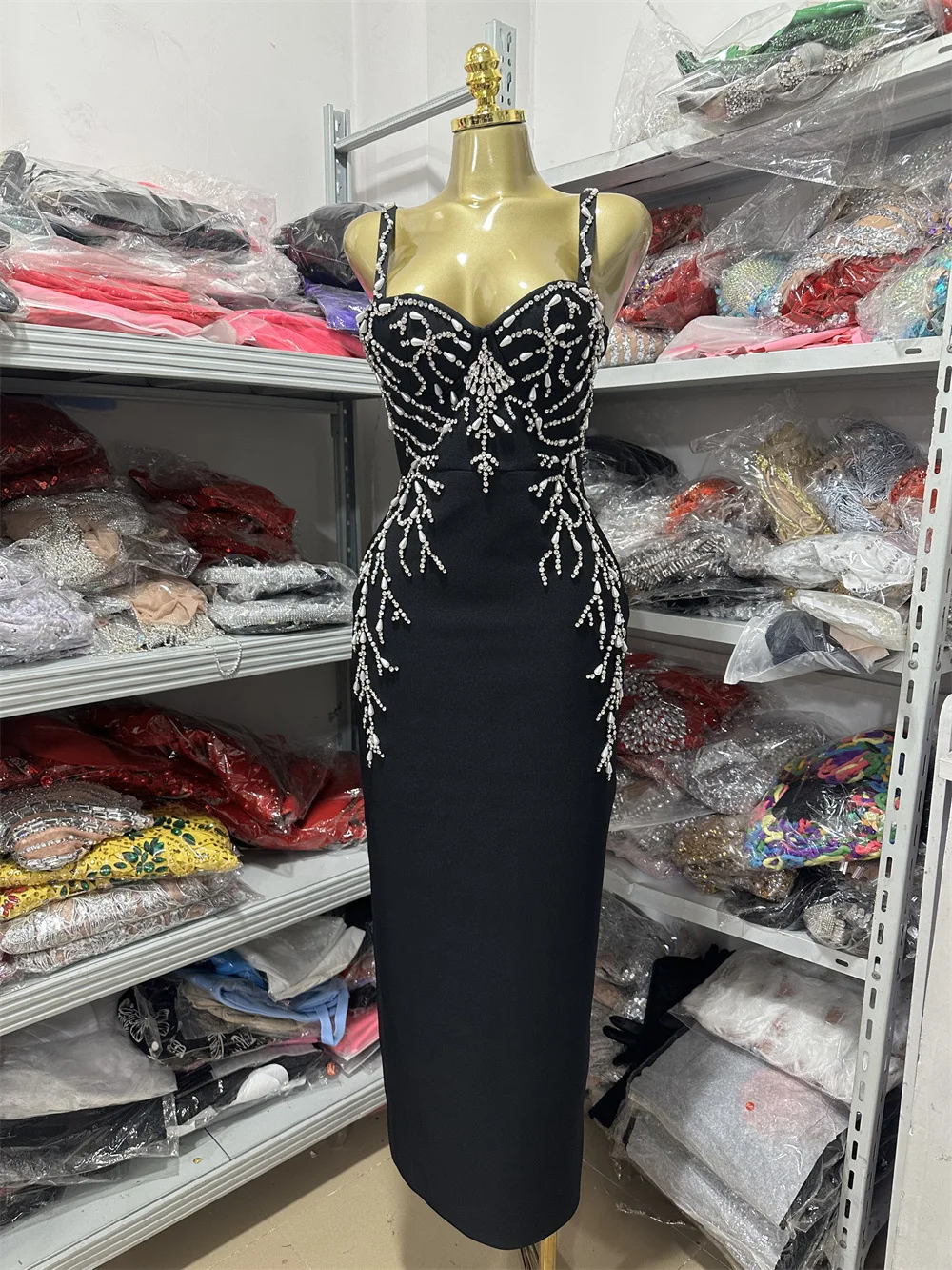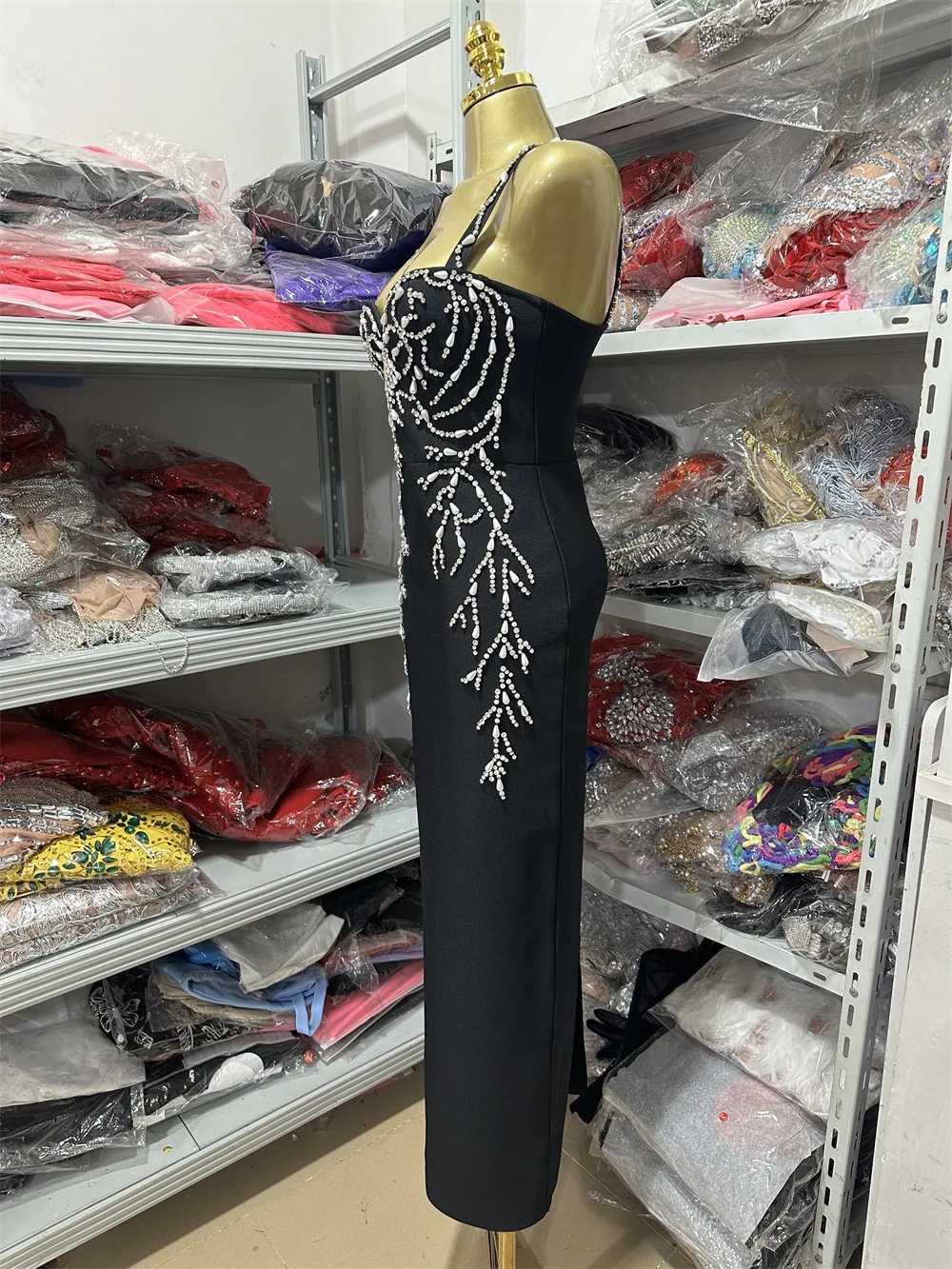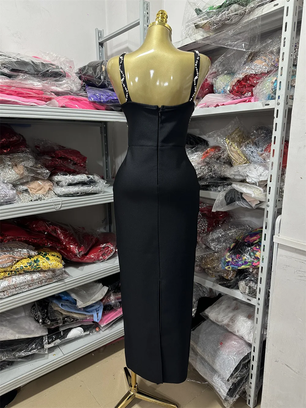 GX3283 Luxury Quality Women Clothing Boutique New Sexy Sleeveless Diamond Party Long Dress Slim Fit Bandage Evening Maxi Dresses