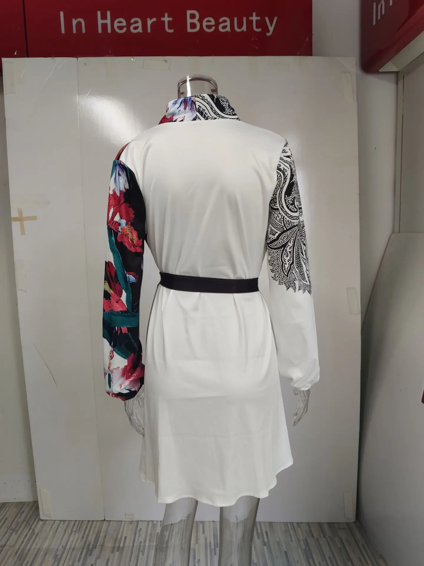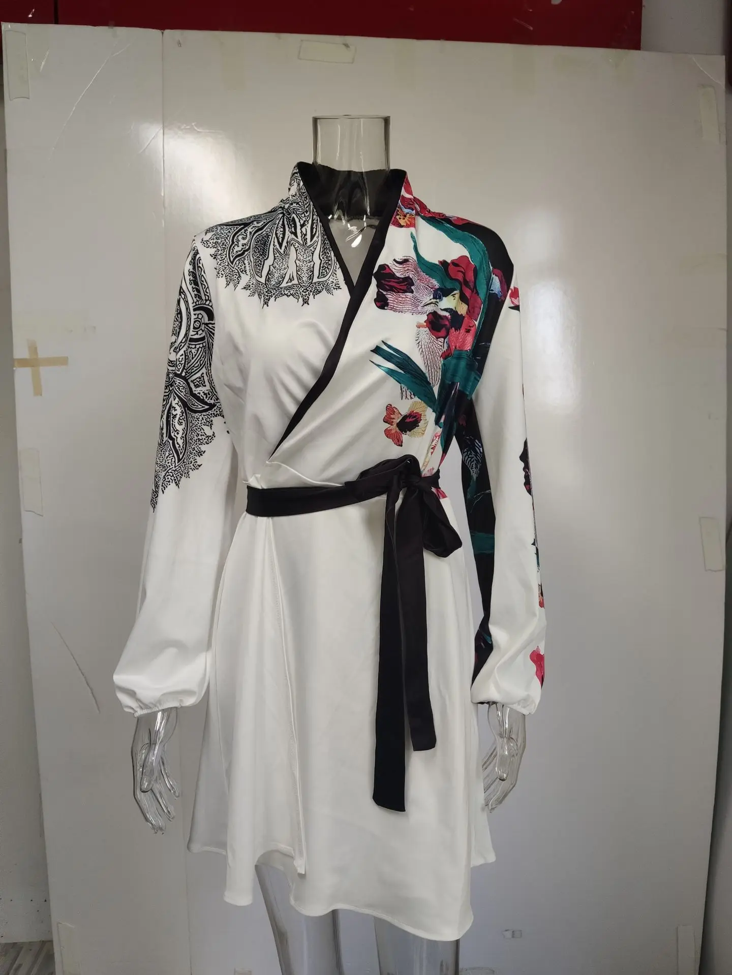 GX21688 Spring Fall 2023 Women's Sexy V-neck Long Sleeve Mini Dresses Causal Printed Patchwork Dress