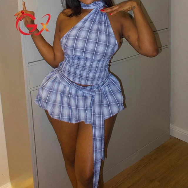 GX1899 Fashion 2026 Clothing Boutique Fashion Outfit for Women Sleeveless Halter Unique Tops and Bubble Mini Skirt 2 Piece Sets
