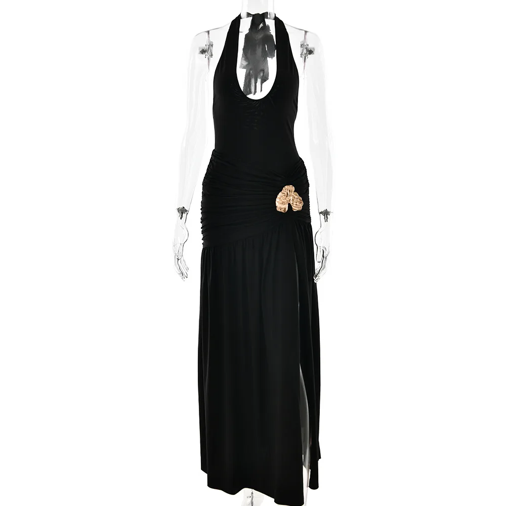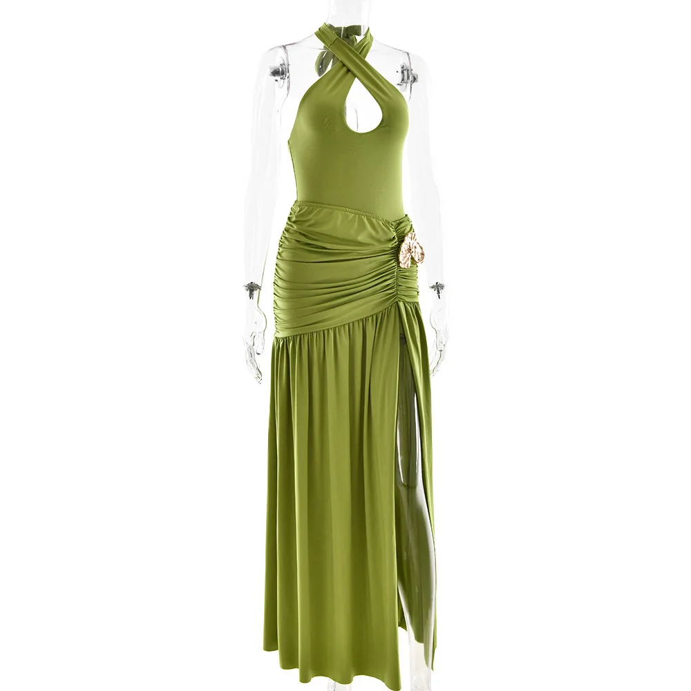 GX1548 Fashion 2026 Women Clothing Boutique Sleeveless Halter Deep V-neck Bodysuit and Split Long Maxi Skirt 2 Piece Set