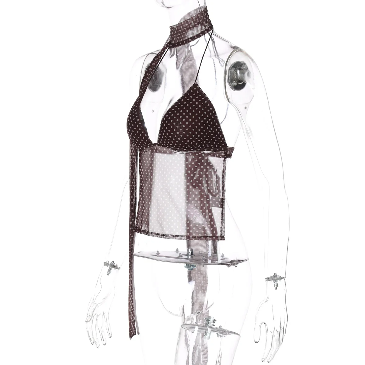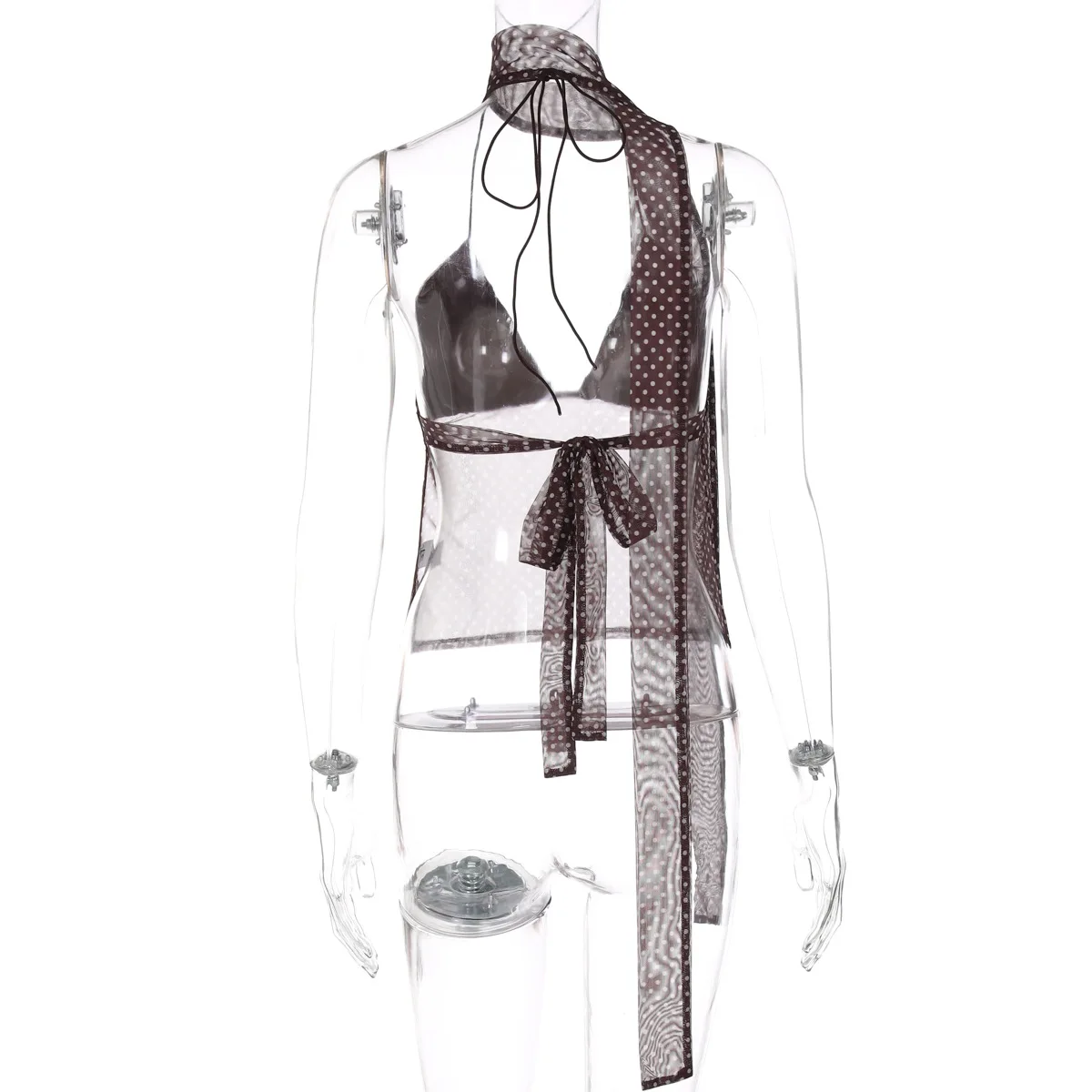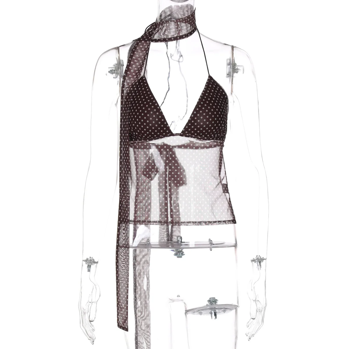 GX8408 Fashion 2026 Summer Women's Clothing Boutique Sleeveless V-Neck Printed Tops Sexy See Through Women Backless Blouse