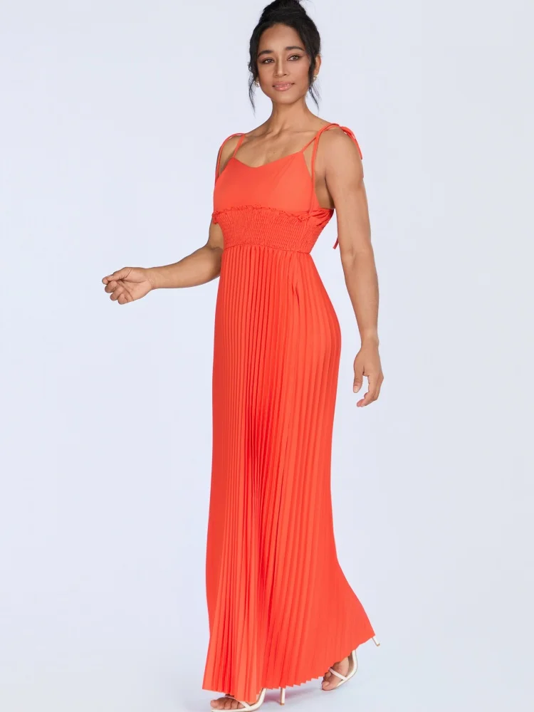 New Arrival Wholesale Ladies Summer Sexy Sling Slim Fashion Breathable Solid Color Pleated Dress