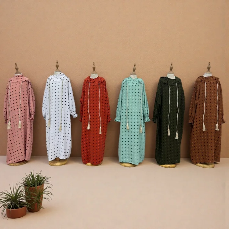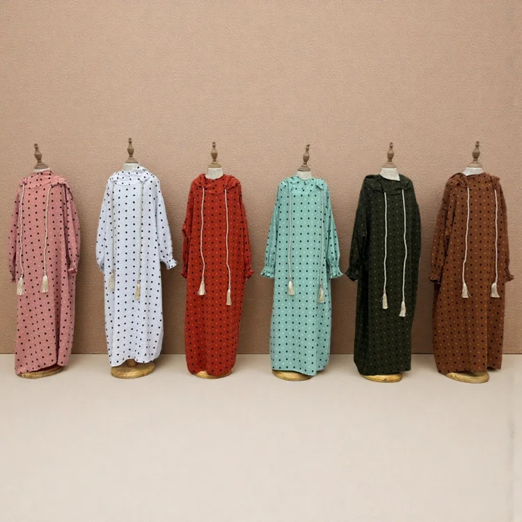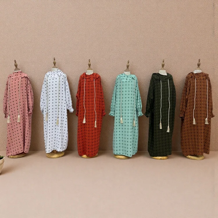 Wholesale New Middle East Loose Muslim Robe Dot Decorated Hooded Long Sleeve Fashion Dress
