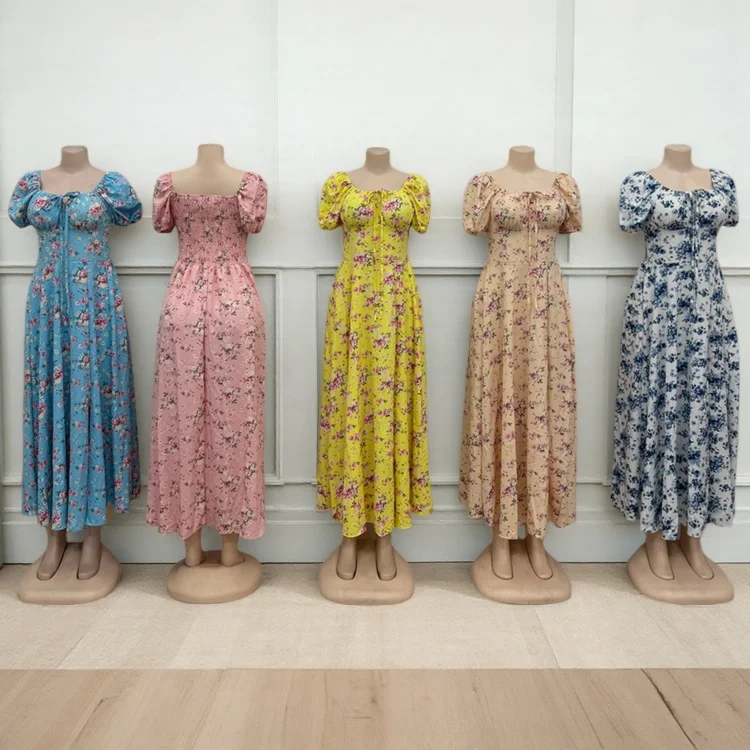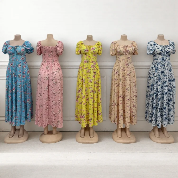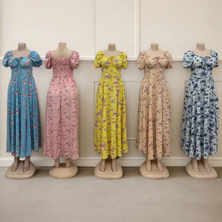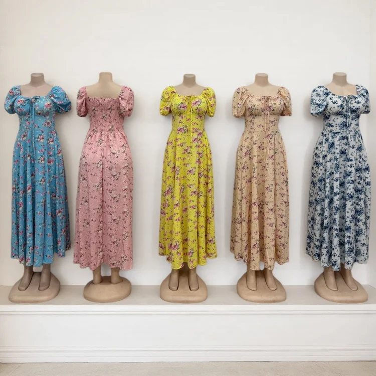 Wholesale New Spring and Summer Casual Fashion Women Short Sleeve square Collar A- Line Dress