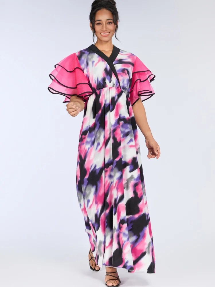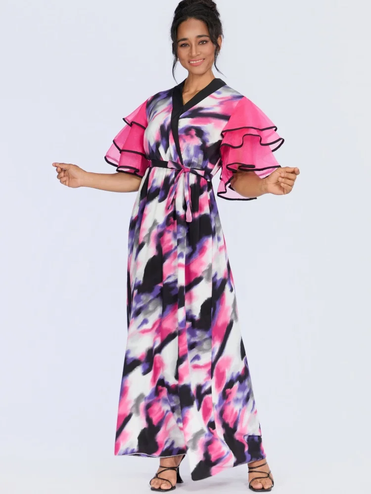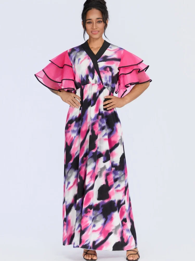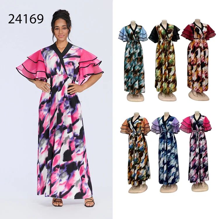 Wholesale New Summer Casual V-neck Printed Short Sleeve Breathable Fashion Dress