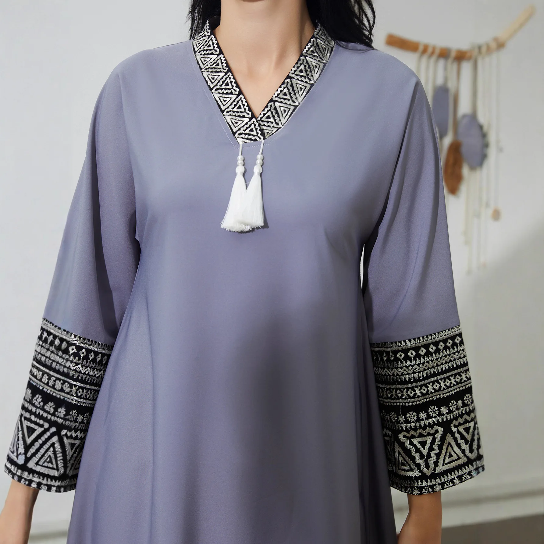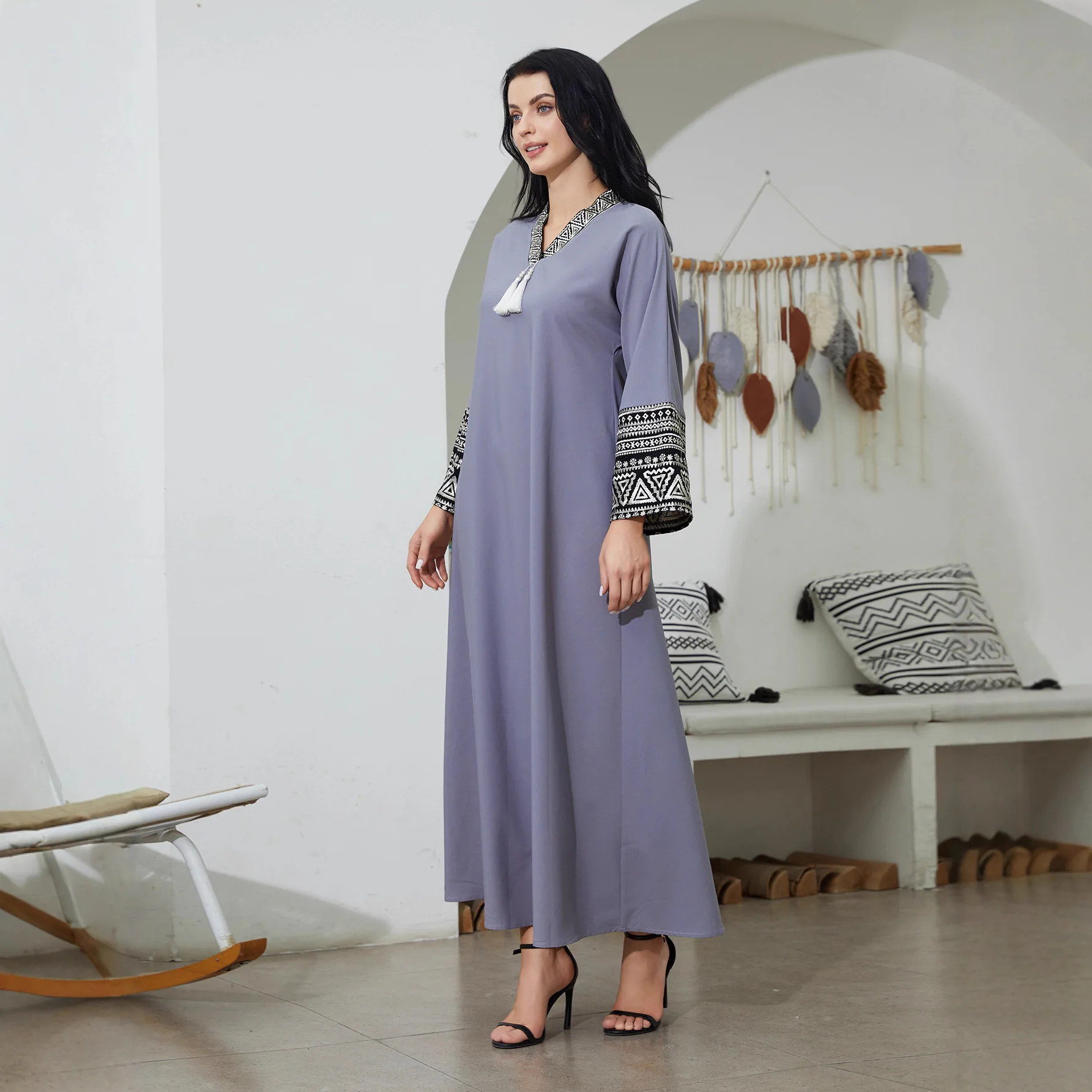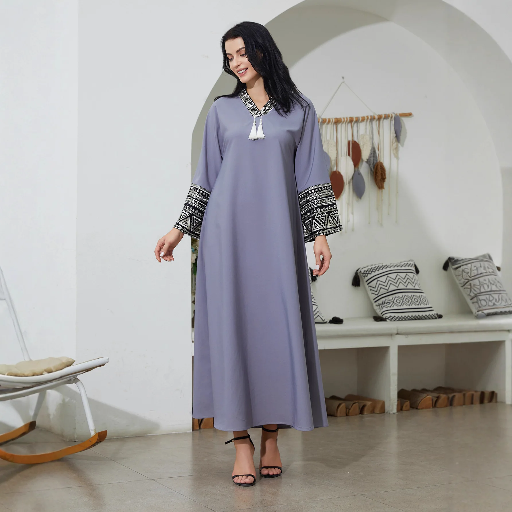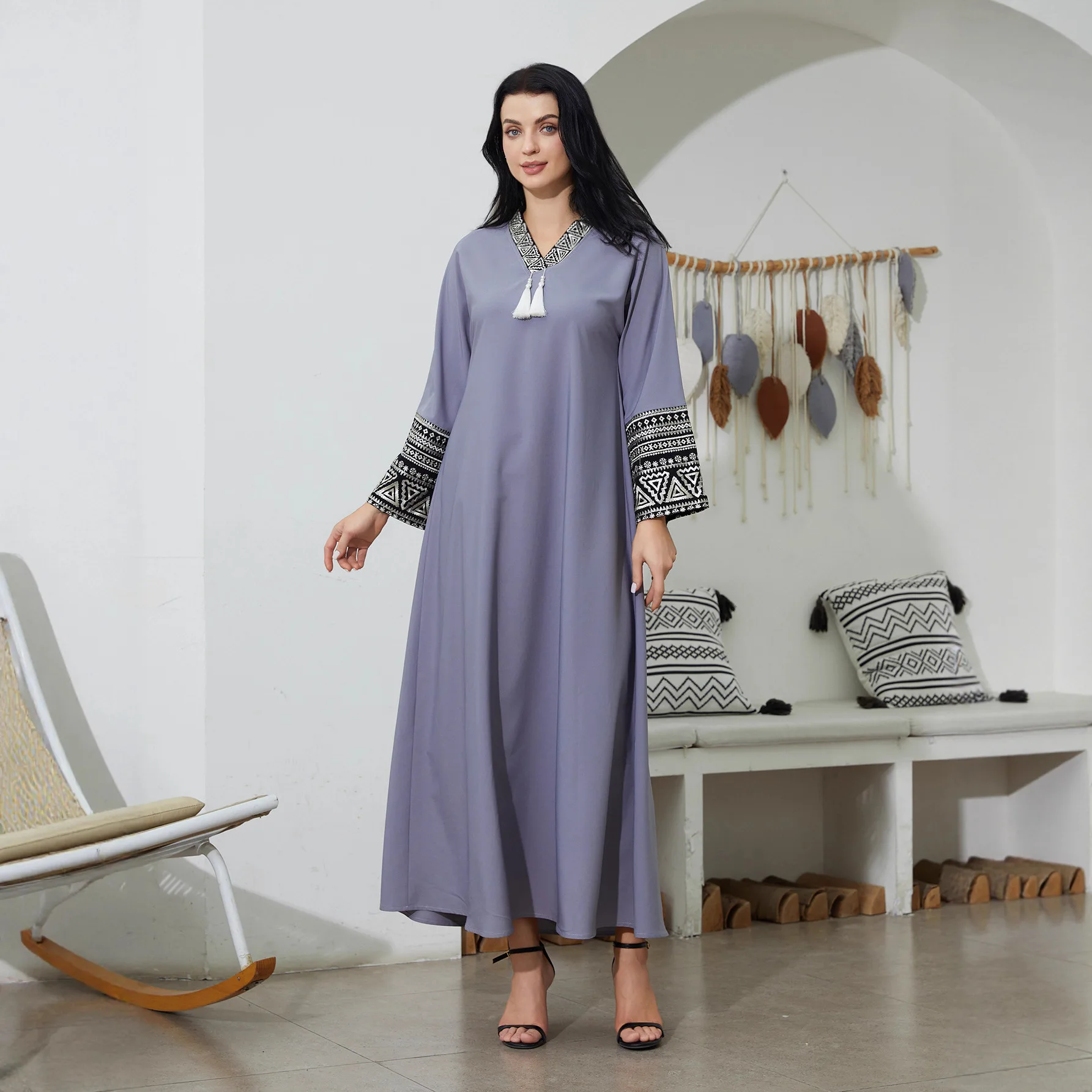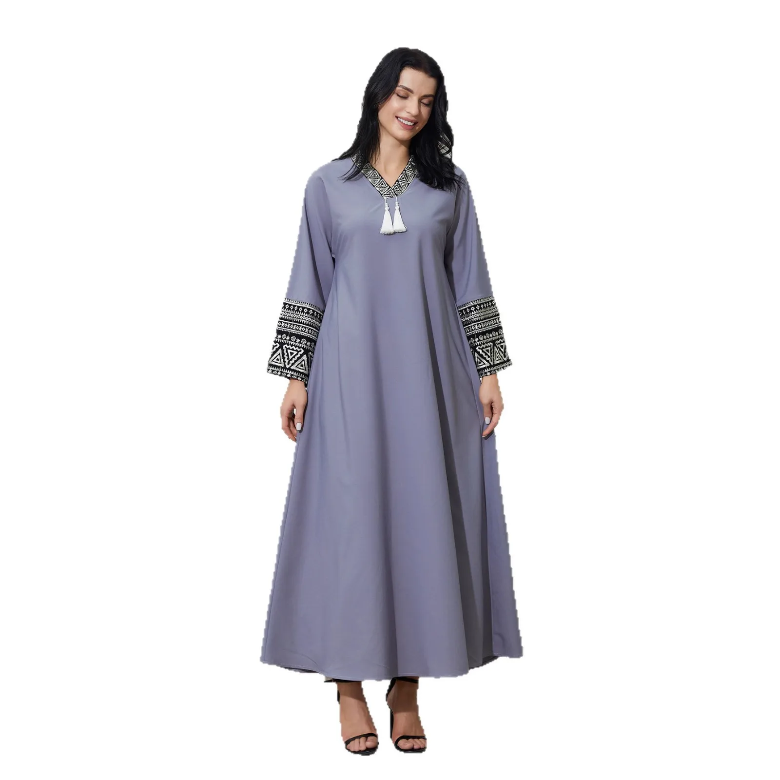 Wholesale New Middle Eastern Muslim Robe Dress Women Stitching Embroidered V-neck Dress