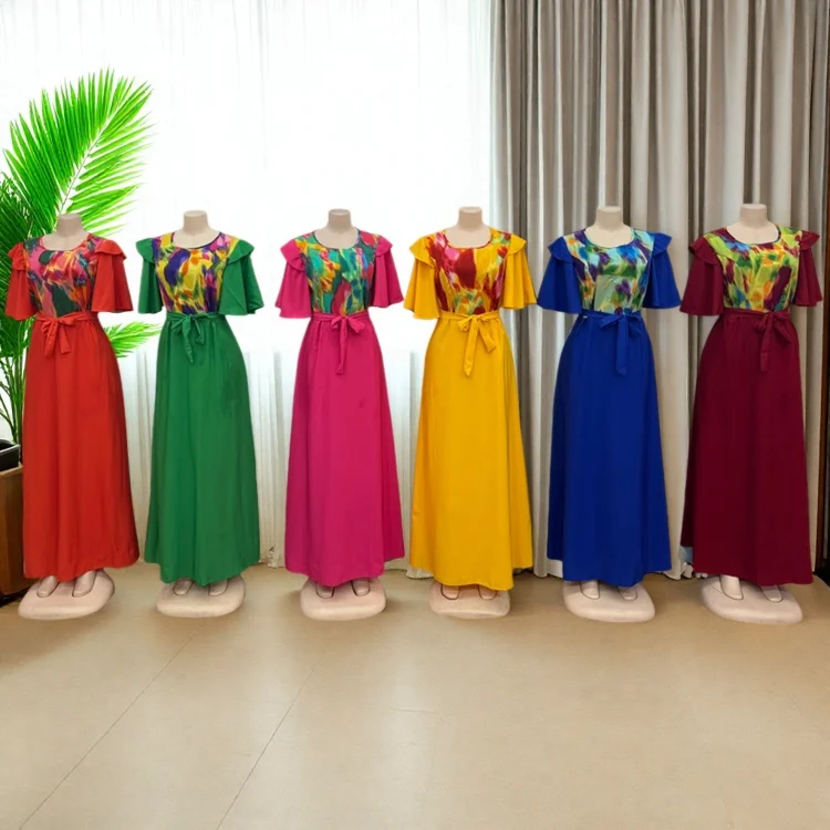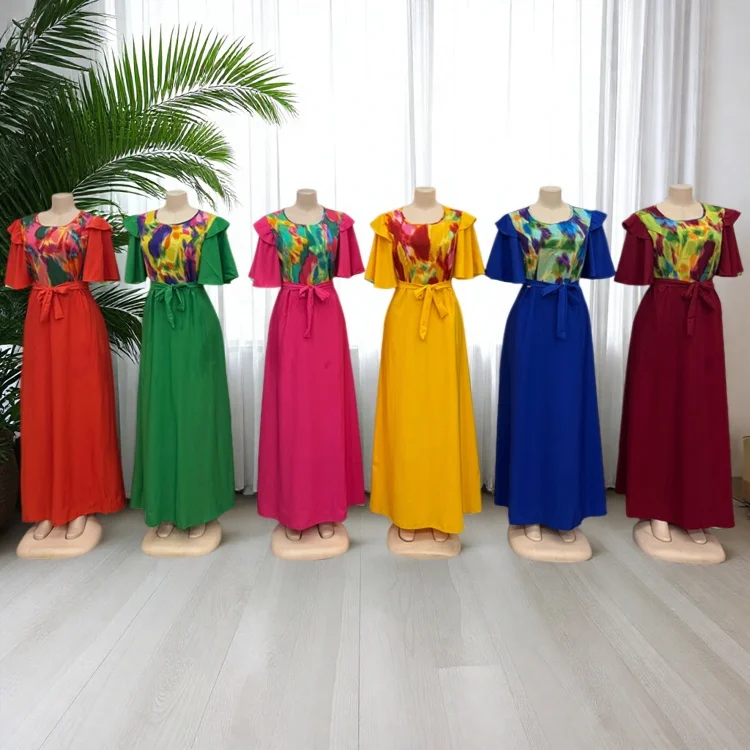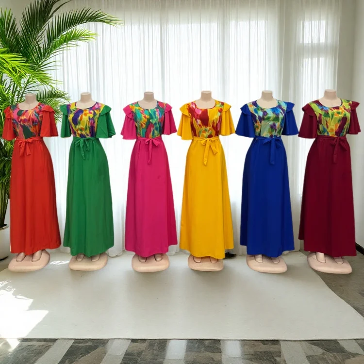 Wholesale Latest Fashion Autumn Women's Casual Printed Large Size Short Sleeve Round Neck Dress