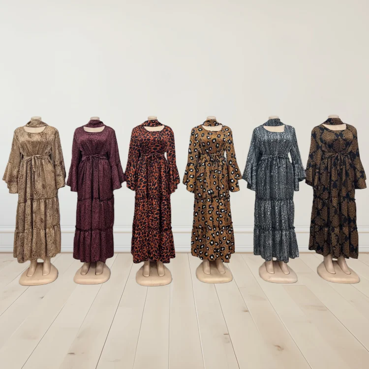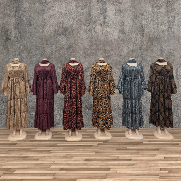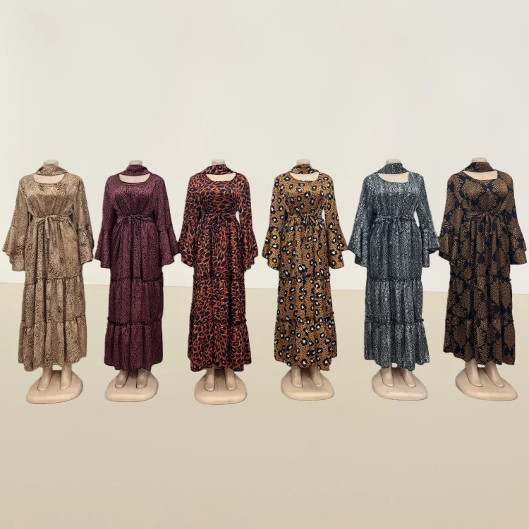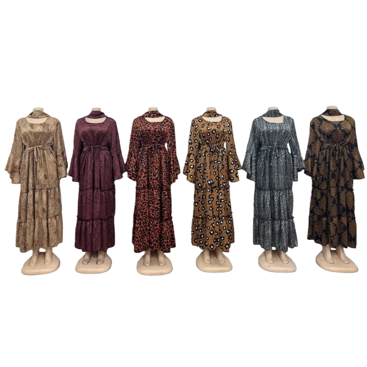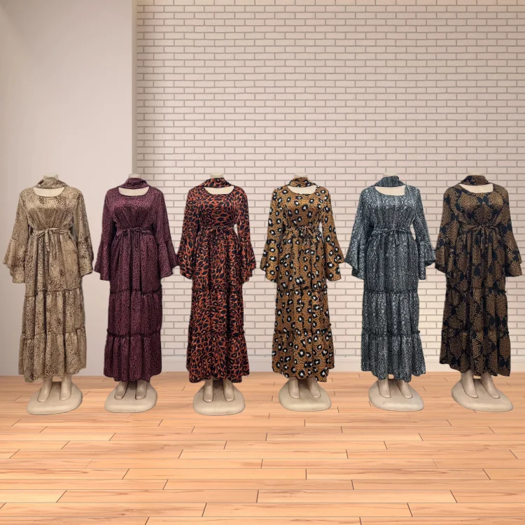 Wholesale Large Size Spring Elegant Casual Women's Long Sleeve Stitching Leopard Print Dress