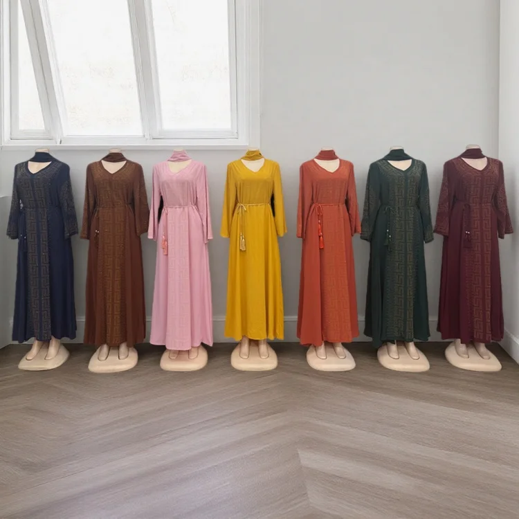 Wholesale New Style Muslim V-neck Fashion Beaded Tassel Decoration Plus Size Women Dress