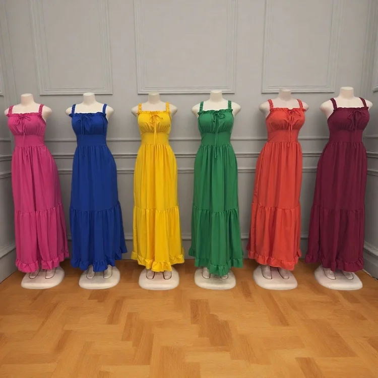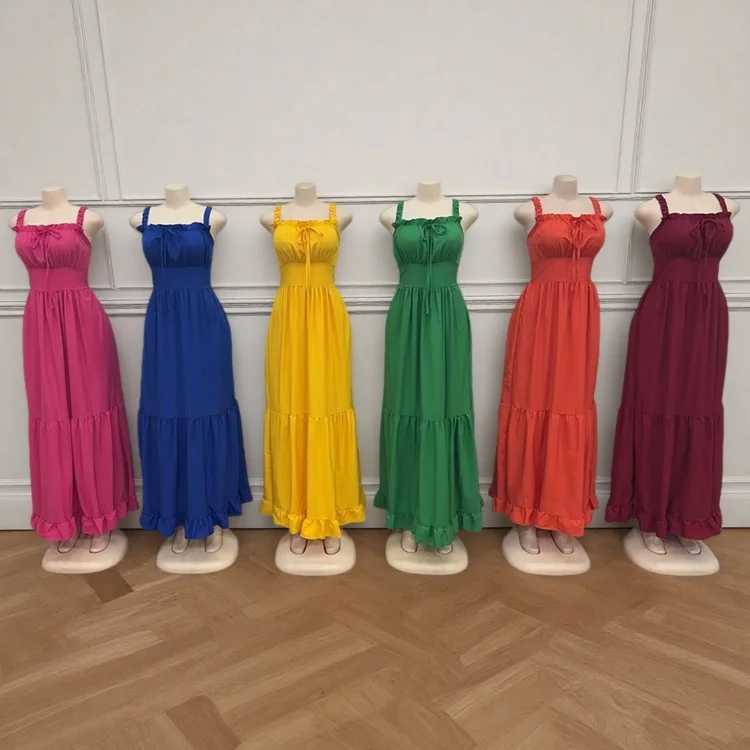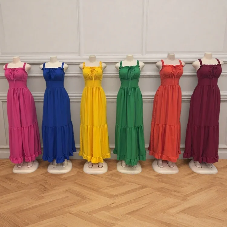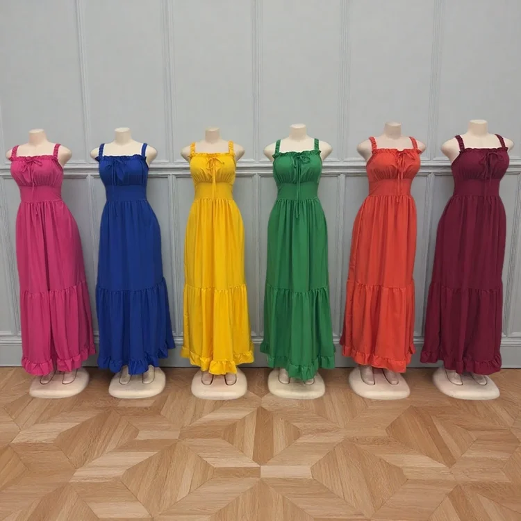 New Wholesale Fashion Suspenders Sleeveless High Waist Loose Solid Color Women's Dress