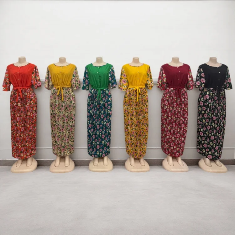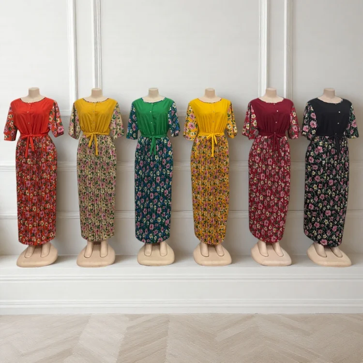 Wholesale New Summer Round Neck Printed Women's Short Sleeve Floral Fashion Dress