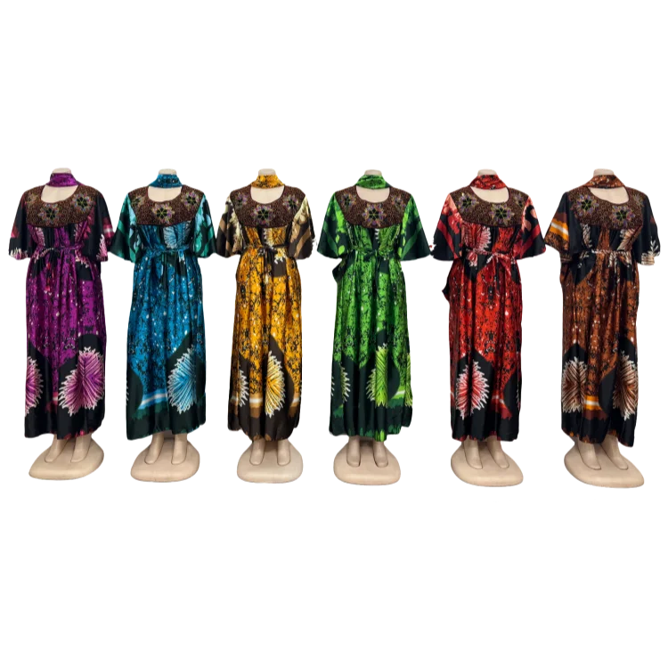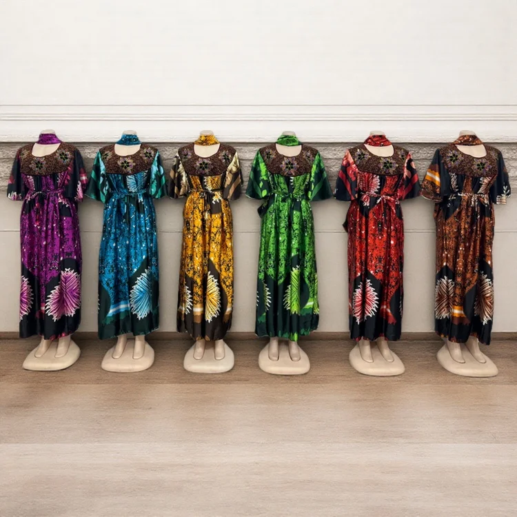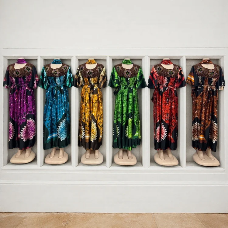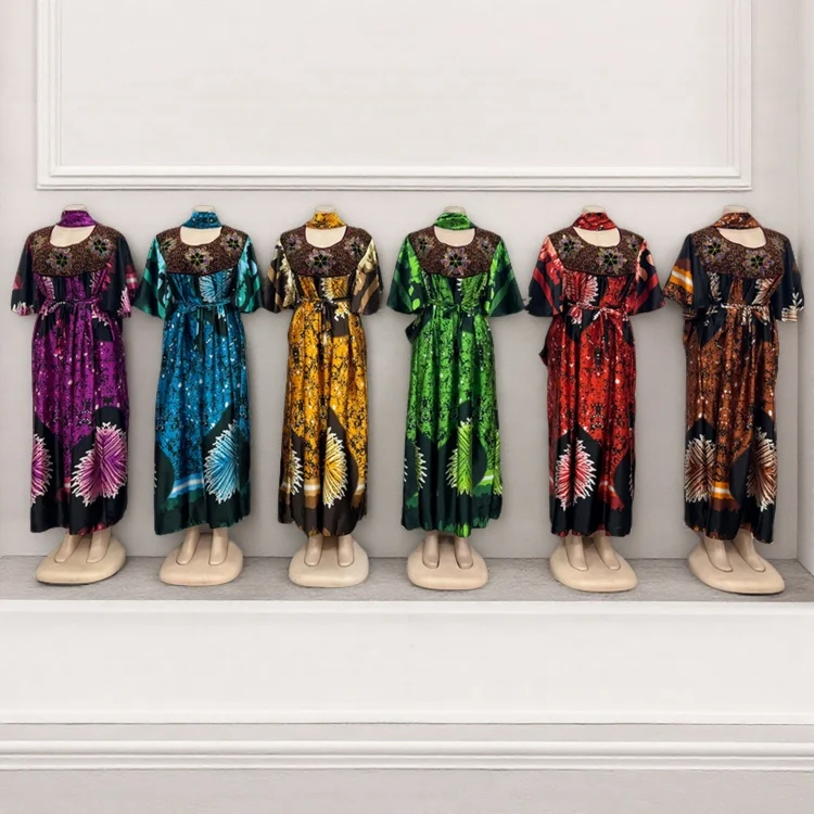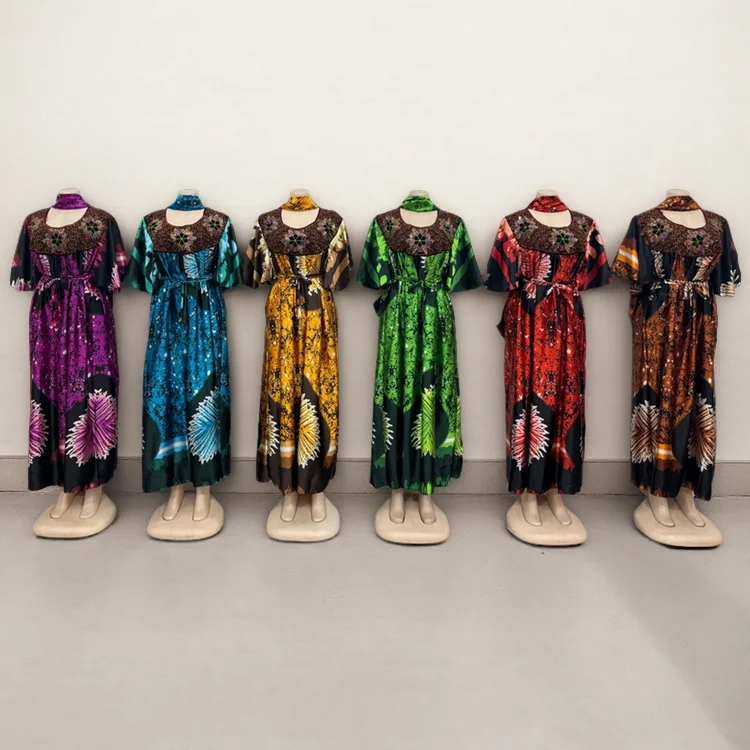 Wholesale Large Size Women Elegant Crewneck Printed African Clothing Muslim Dress