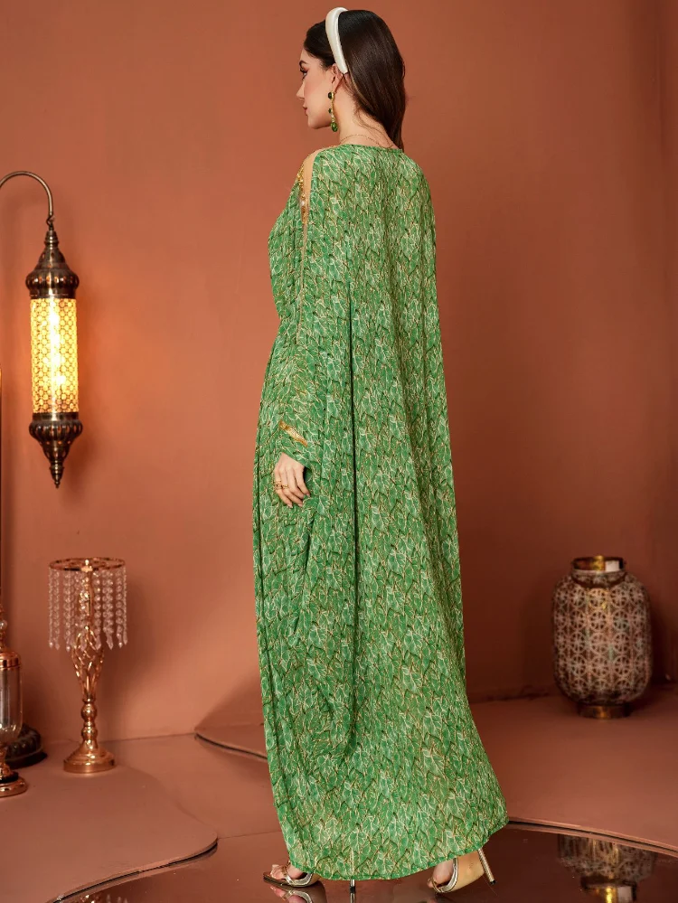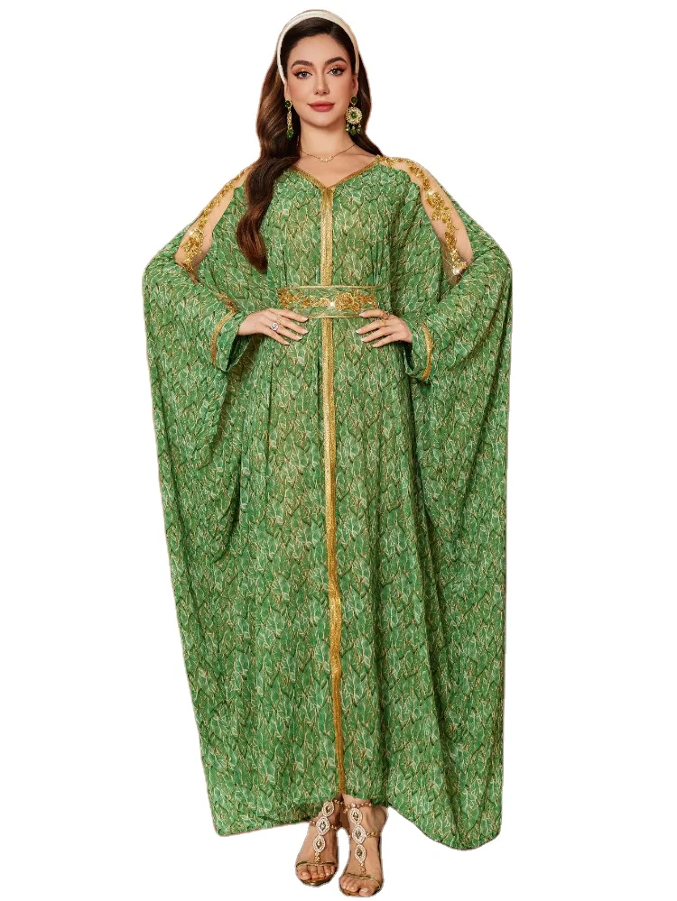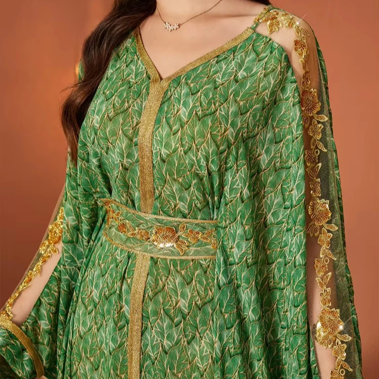 Wholesale New Style Printed Stitching Lace Beaded High Waist Muslim Robe Long Dress