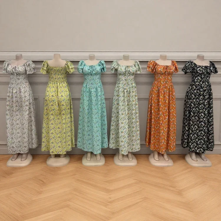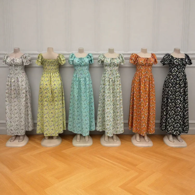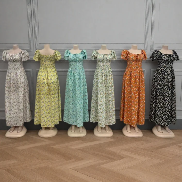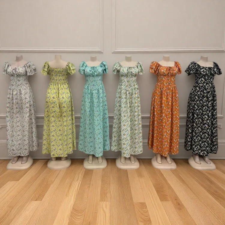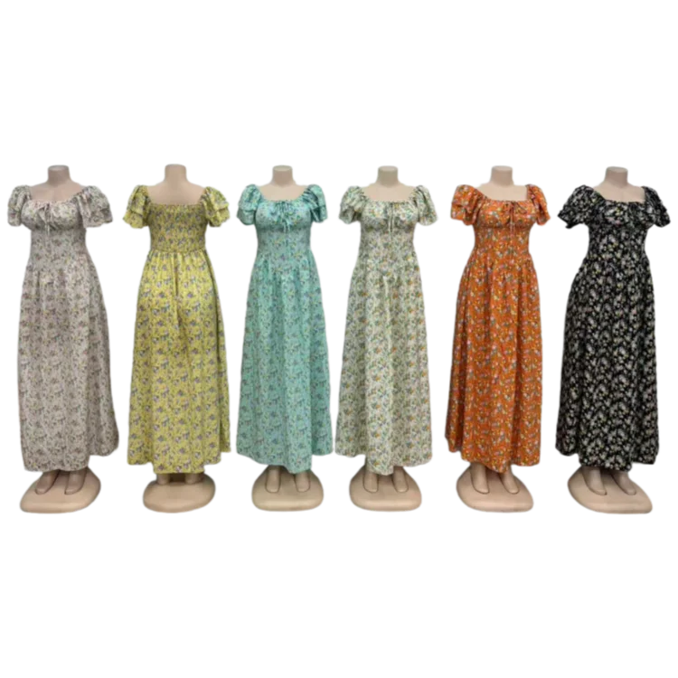 Wholesale Women's Summer New Arrival Printed Floral Slim-Fit Short Sleeve High Waist Dress
