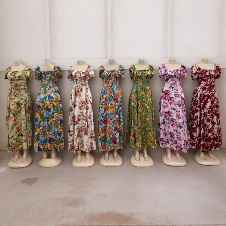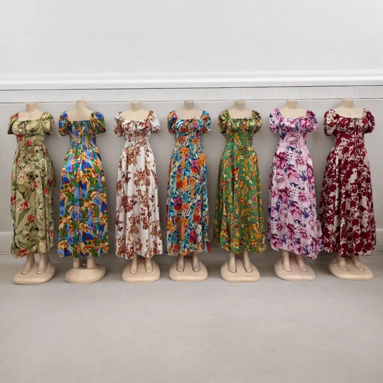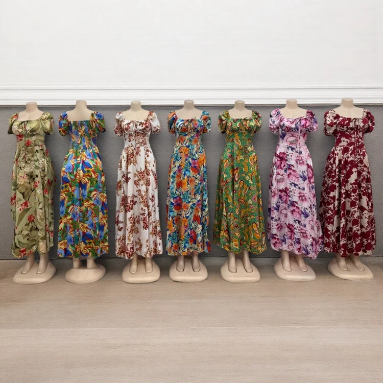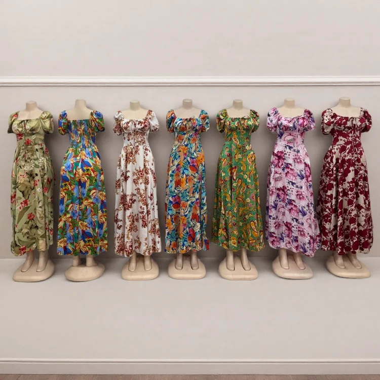 Wholesale New Women's Loose Plus Size Casual Printed Short Sleeve Square Collar Dress