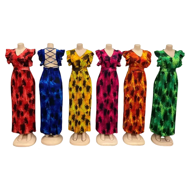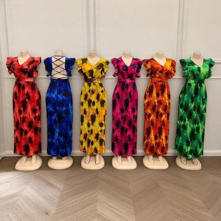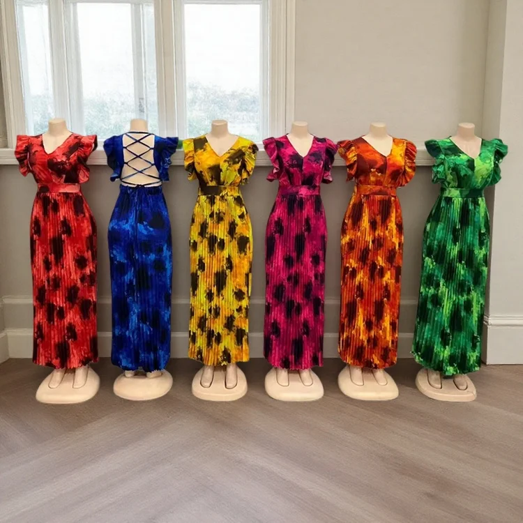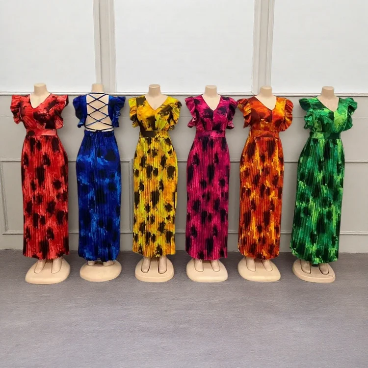 Wholesale New Fashion Loose Ethnic African Print Women's Hollow Backless Long Casual Dress