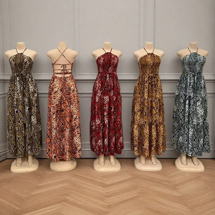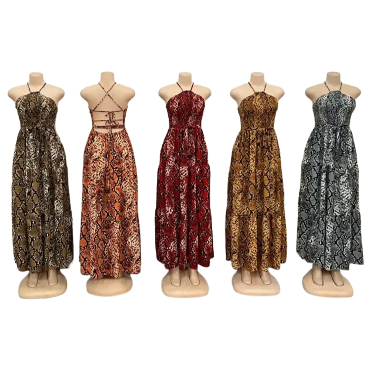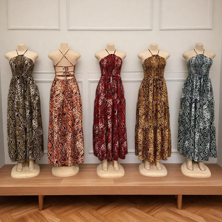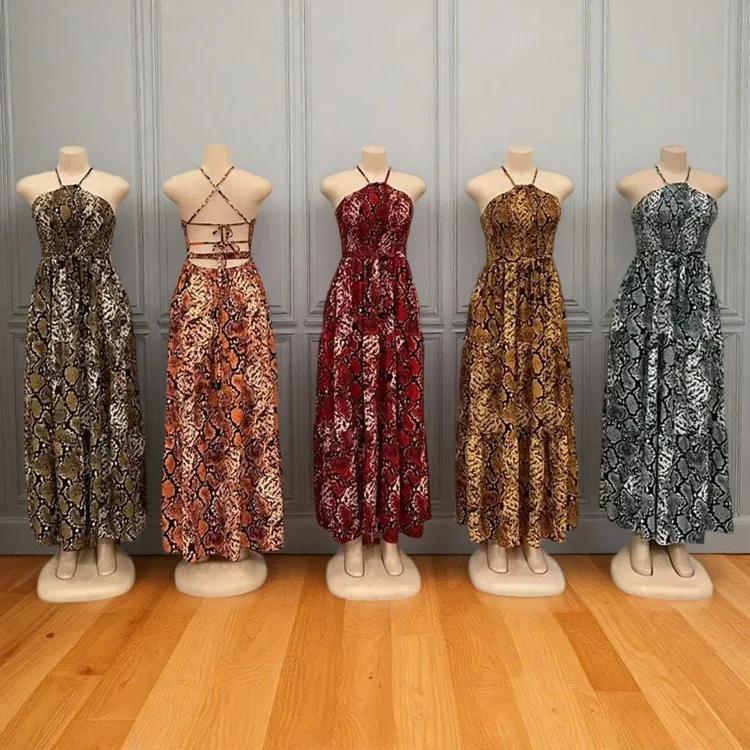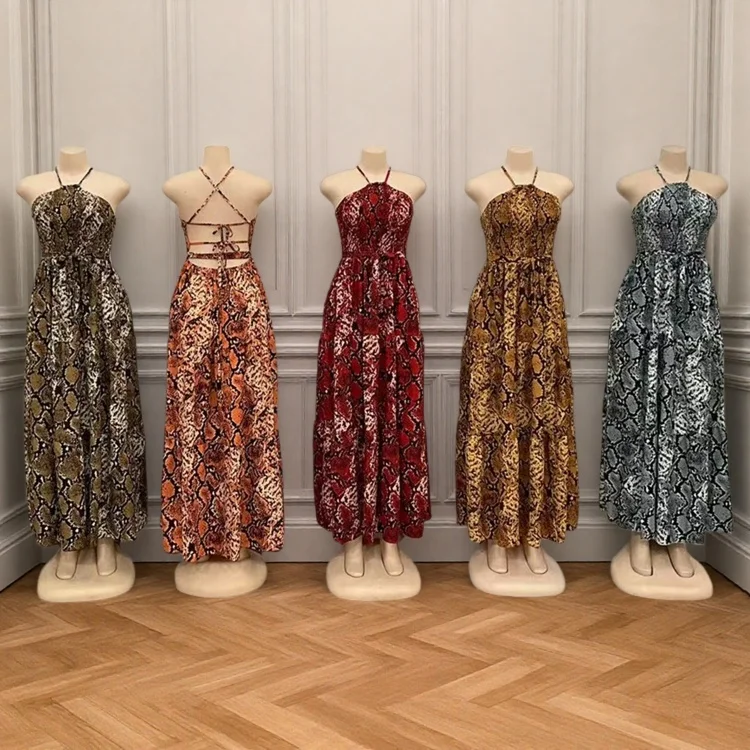 Wholesale New Sexy Backless Leopard Sling Summer Elegant Fashion Women Slim Nightgown Dress