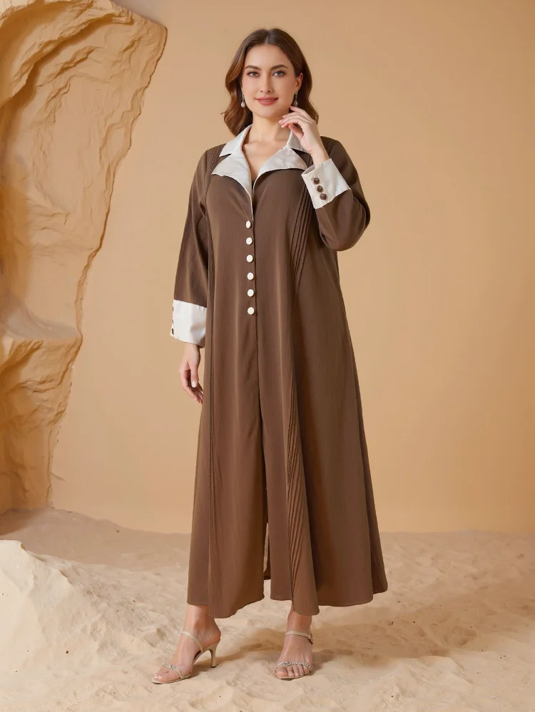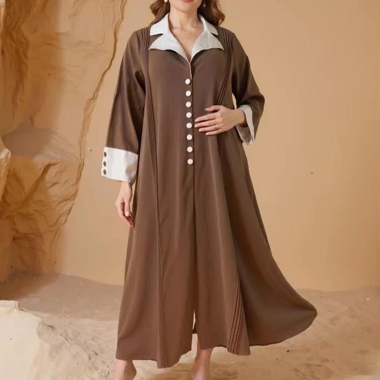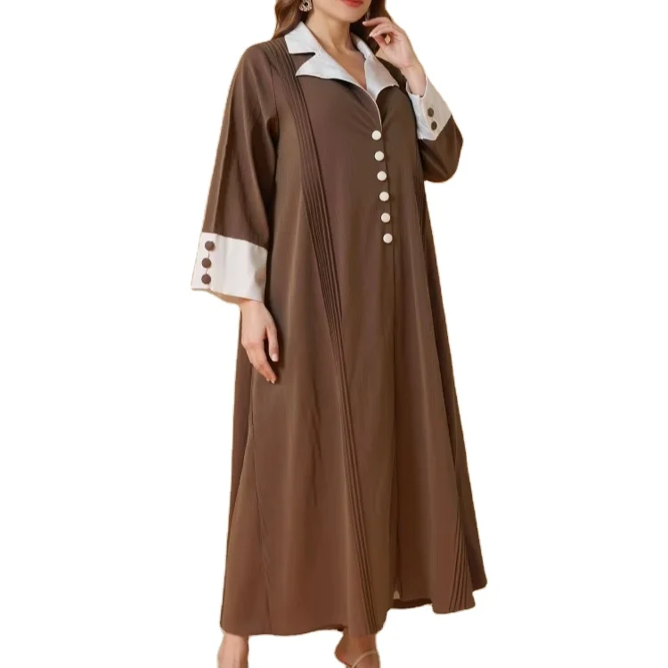 Wholesale New Middle Eastern Muslim Plus Size Robe Abaya Women Button Laps Long Sleeve Dress