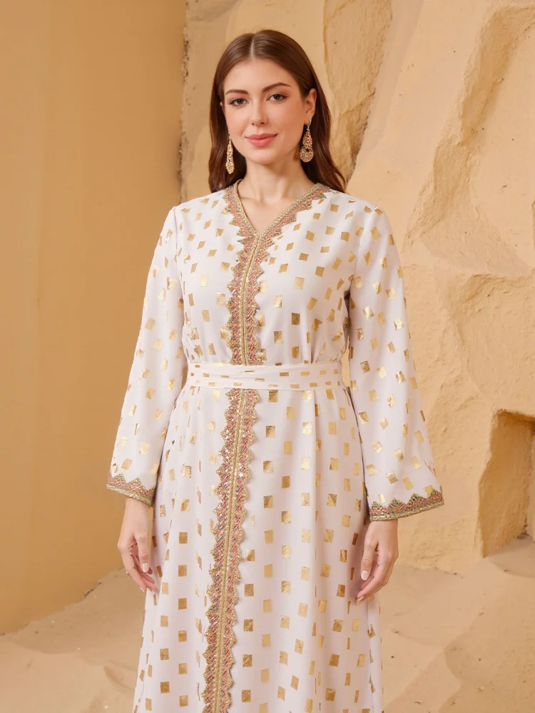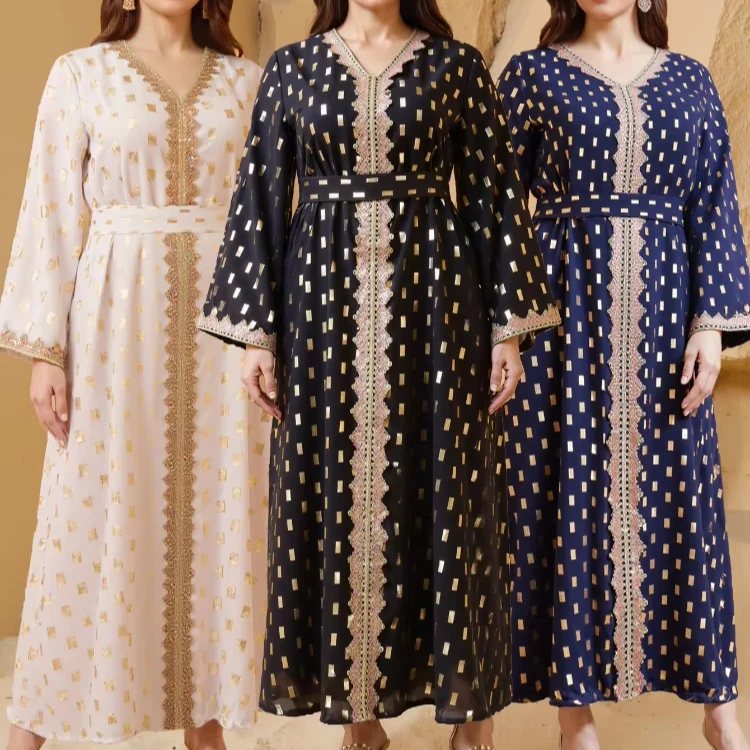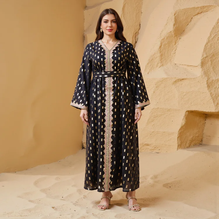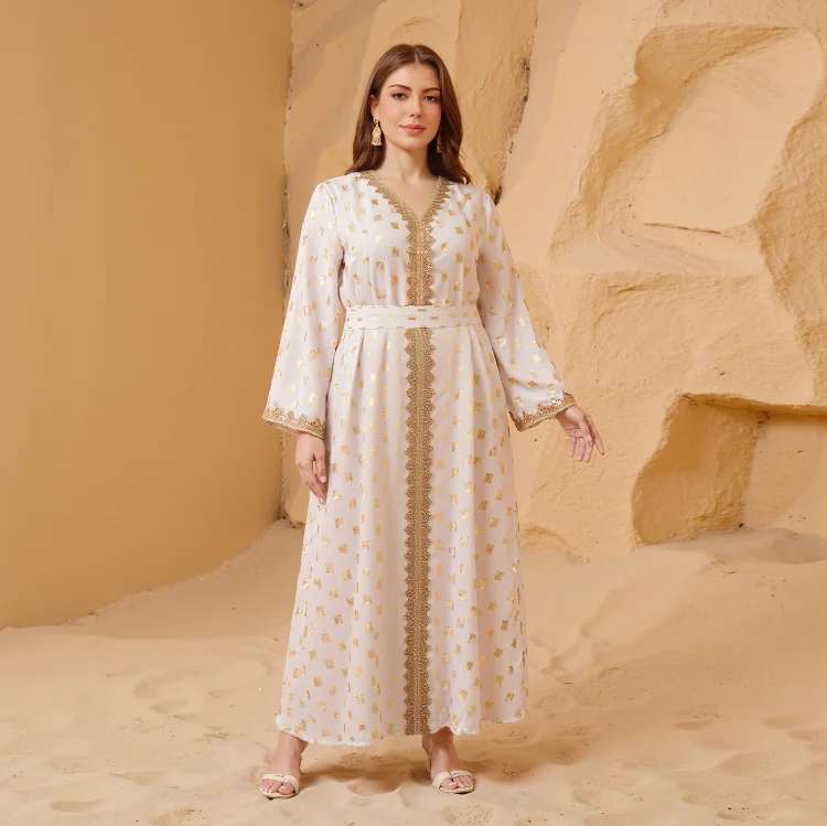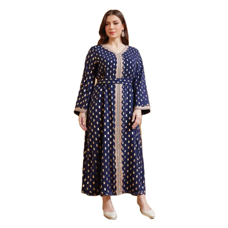 Wholesale New Middle Eastern Muslim Plus Size Robe Women's Girdle Bronzing Long Sleeve Dress