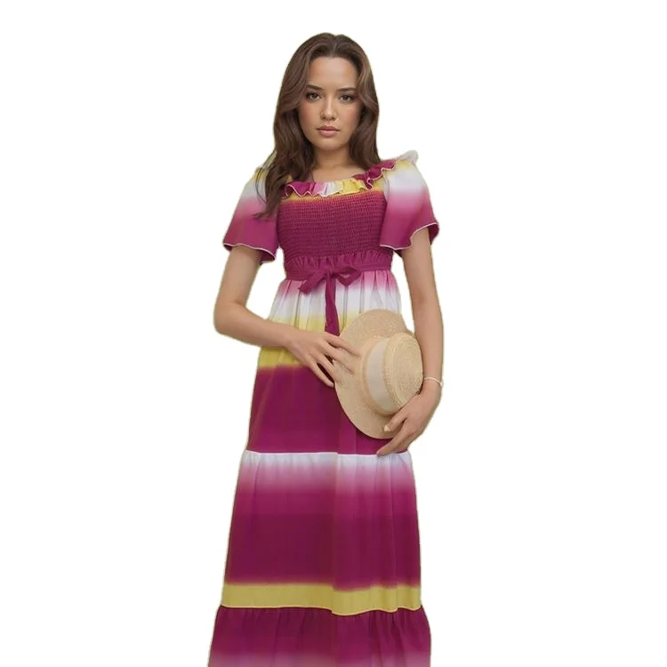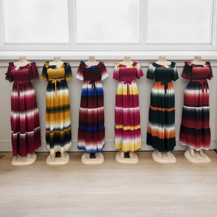 Summer New Fashion Design Waist Lace Color Block African Print Women's Fashion Casual Dress