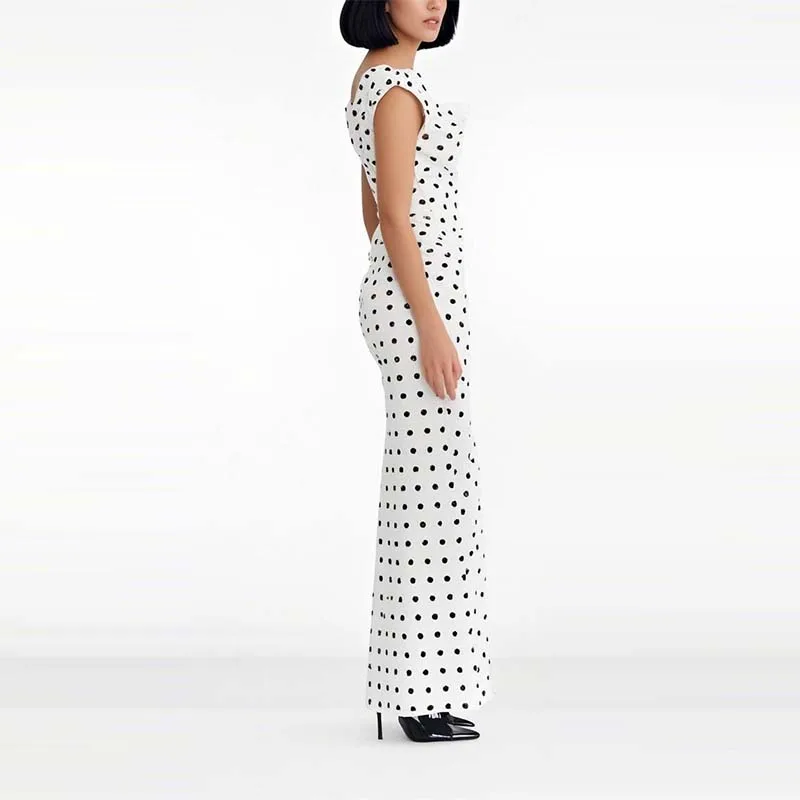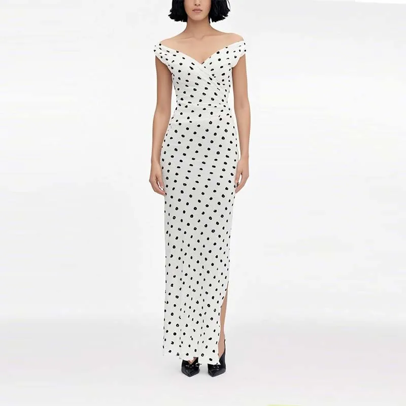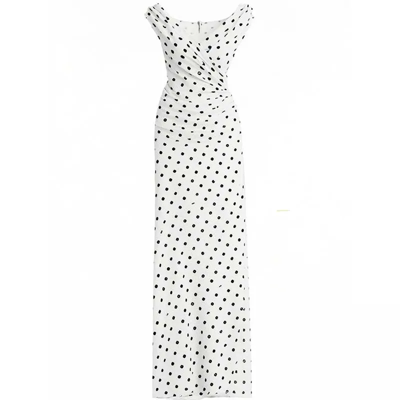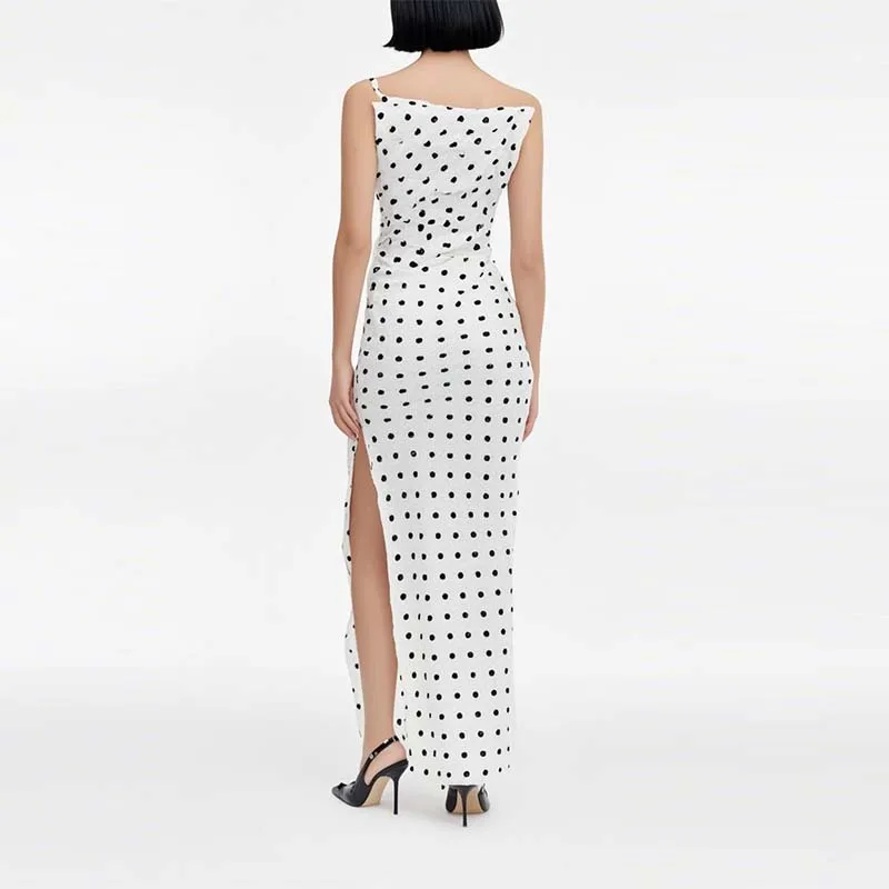 Factory Wholesale V-neck Collar Sleeveless Summer Apparel Women Elegant Casual Bodycon Sexy Polka Dot Printing Split Dresses