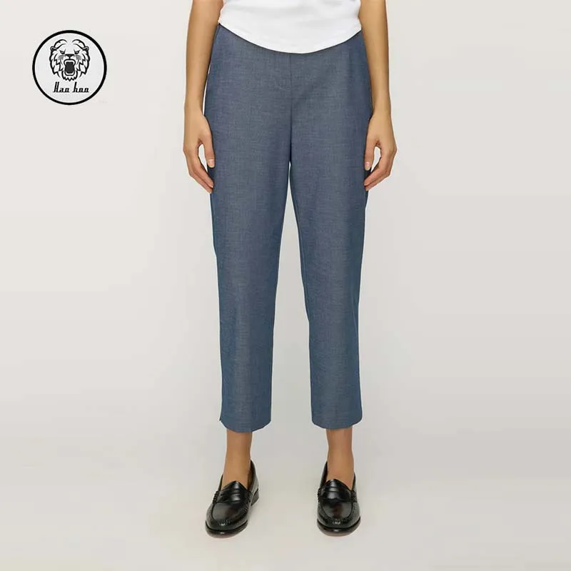 2026 Casual Zipper Decoration Flat Front Elasticated Back Waist Women's Elegant Wide Leg Pant for Spring Summer Autumn