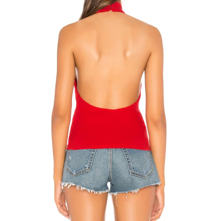 Casual Summer Tank Top Denim Shorts Woven Cotton Spandex Ribbed Open Back Design Halter Top Sweet Summer Sets