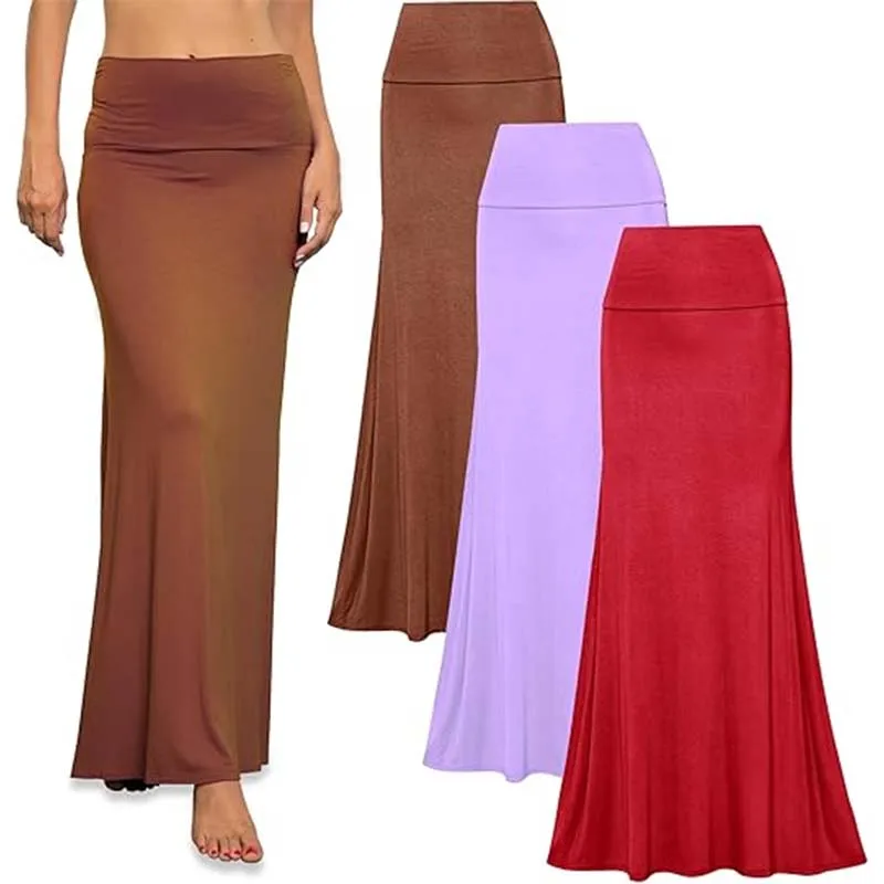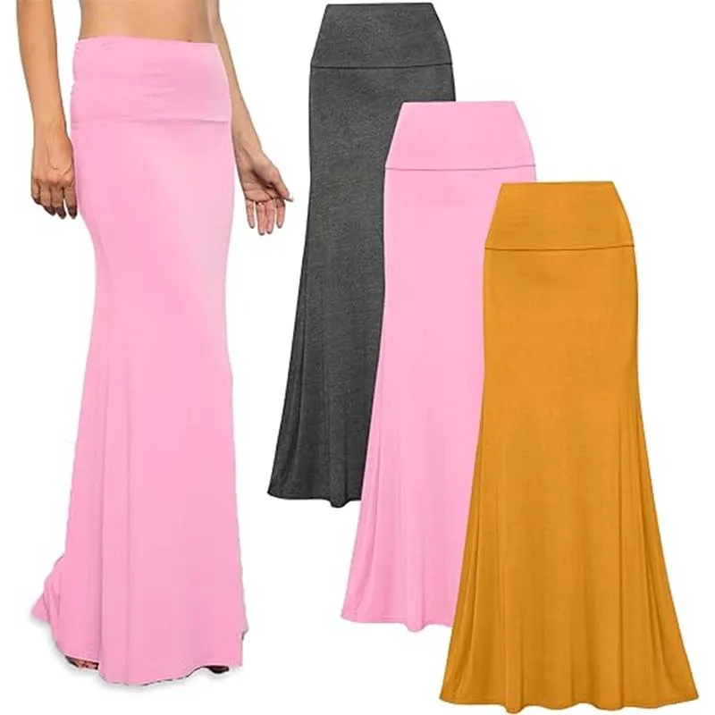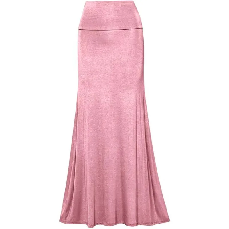 Free Live Women's Long Chiffon Skirts Autumn Stretchy Flowy Maxi Skirt Lace Soft Fold High Waisted for Casual Work Dressy