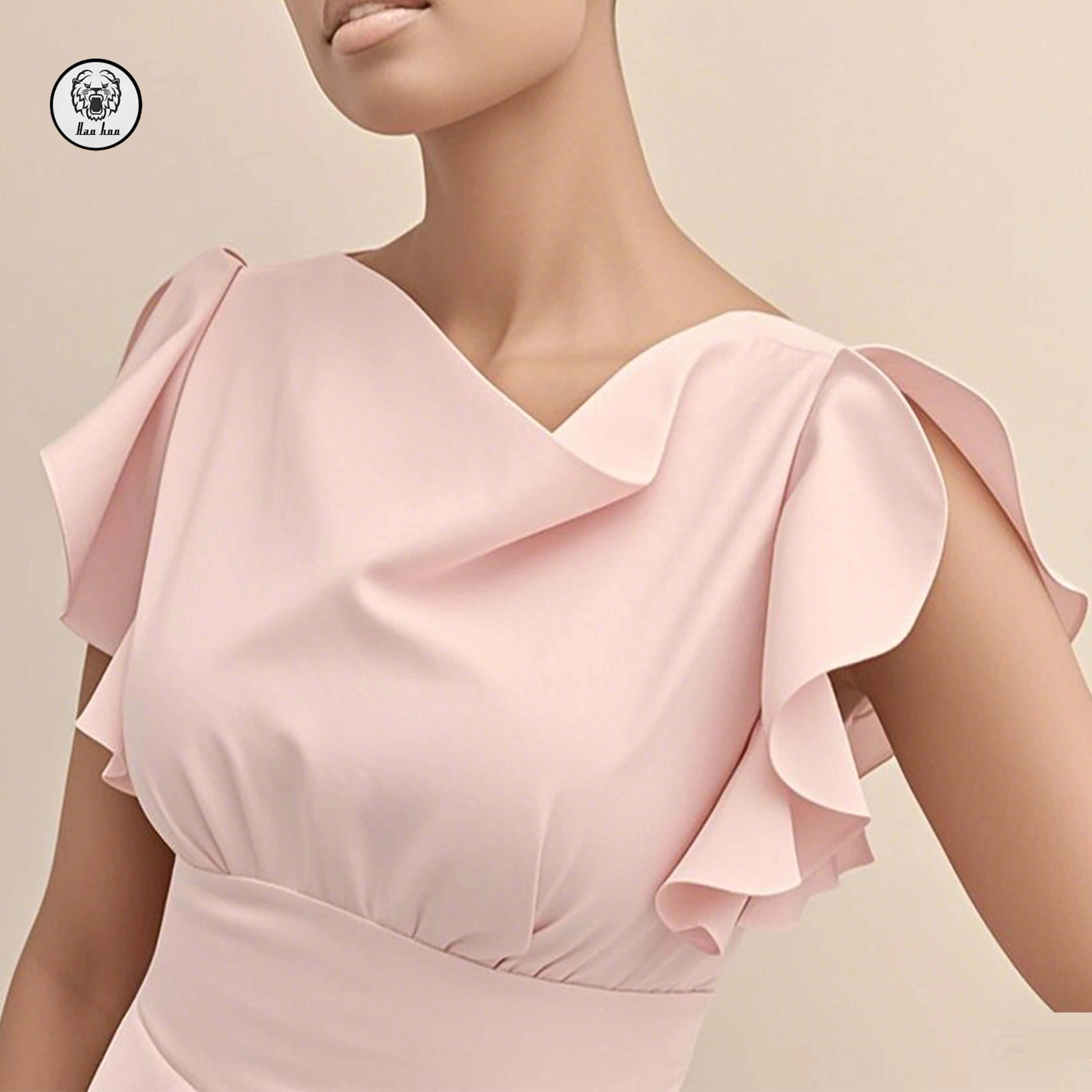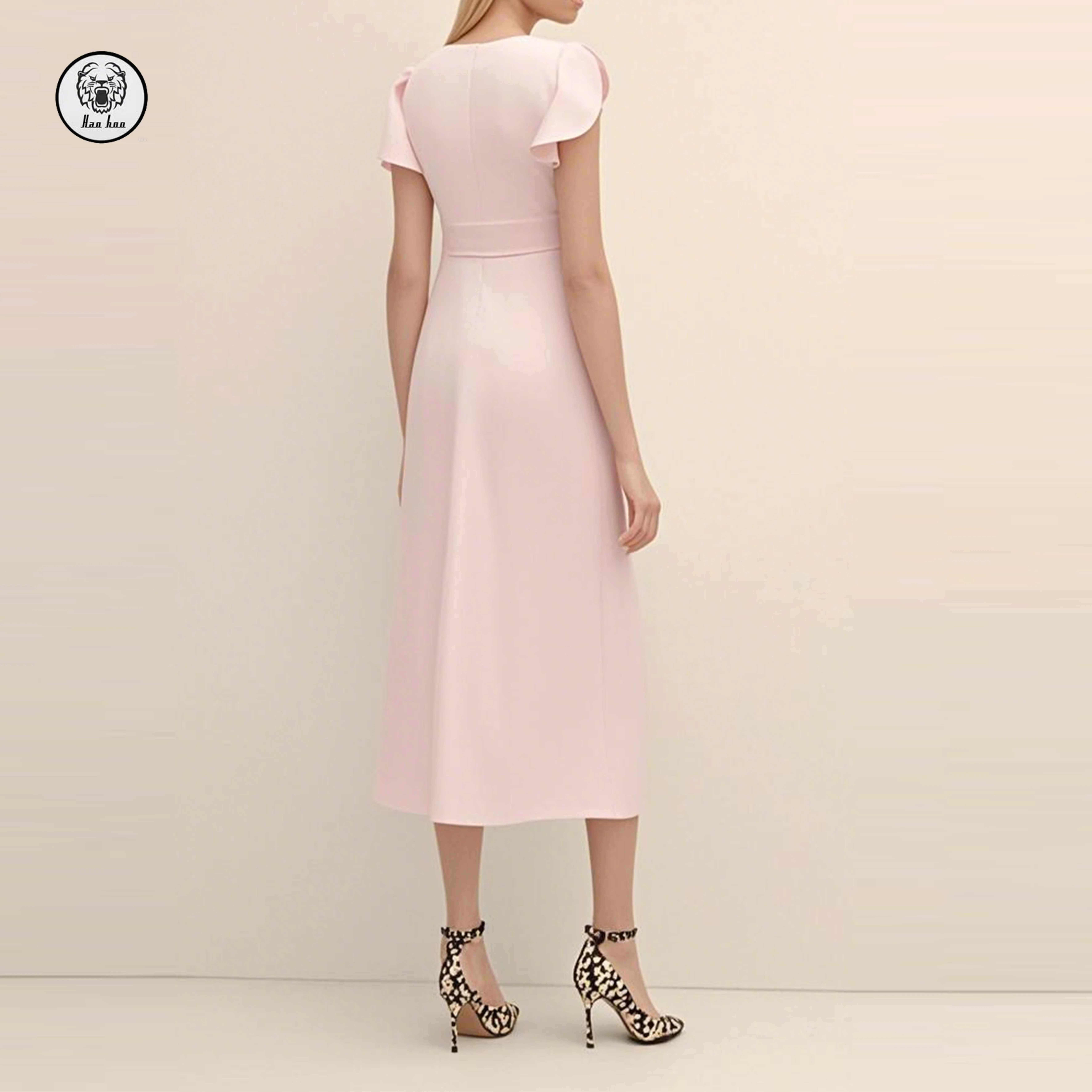2026 New Summer Maxi Women Dress Factory Wholesale Elegant Sexy Flutter Sleeves Crew Neck Empire Waist Zipper Sweet Style