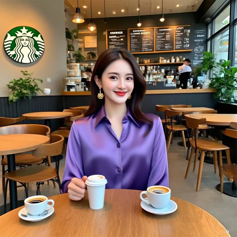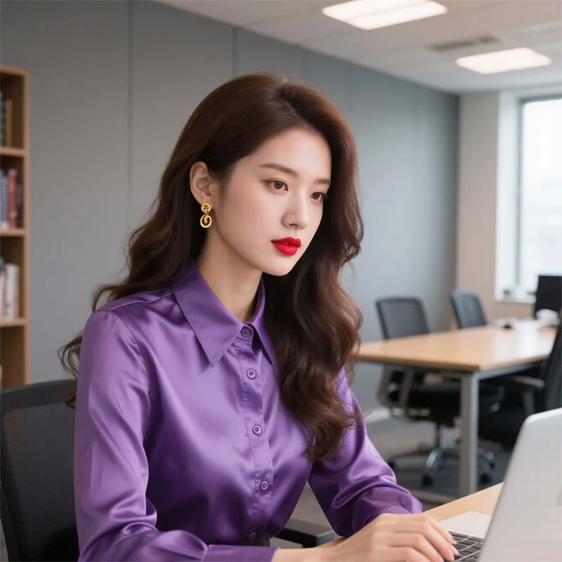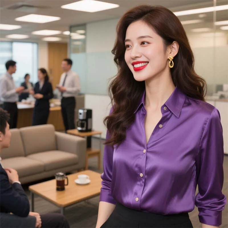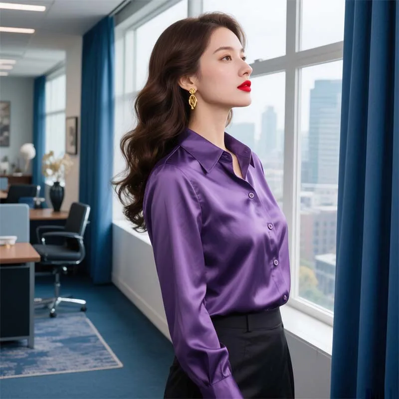 European American Design High-Grade Luxury Retro Purple Long-Sleeved Blouse Professional Satin Light Office Formal Autumn