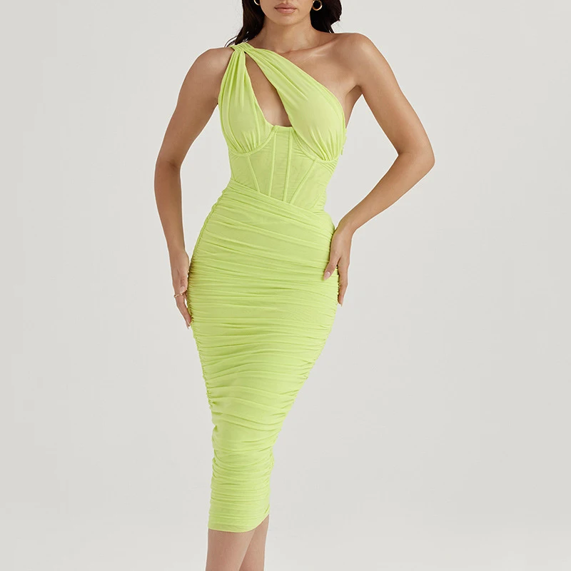 Factory Wholesale Sexy Summer Ladies Casual Elegant Party Women Bodycon Shirred Mesh Medium Dresses