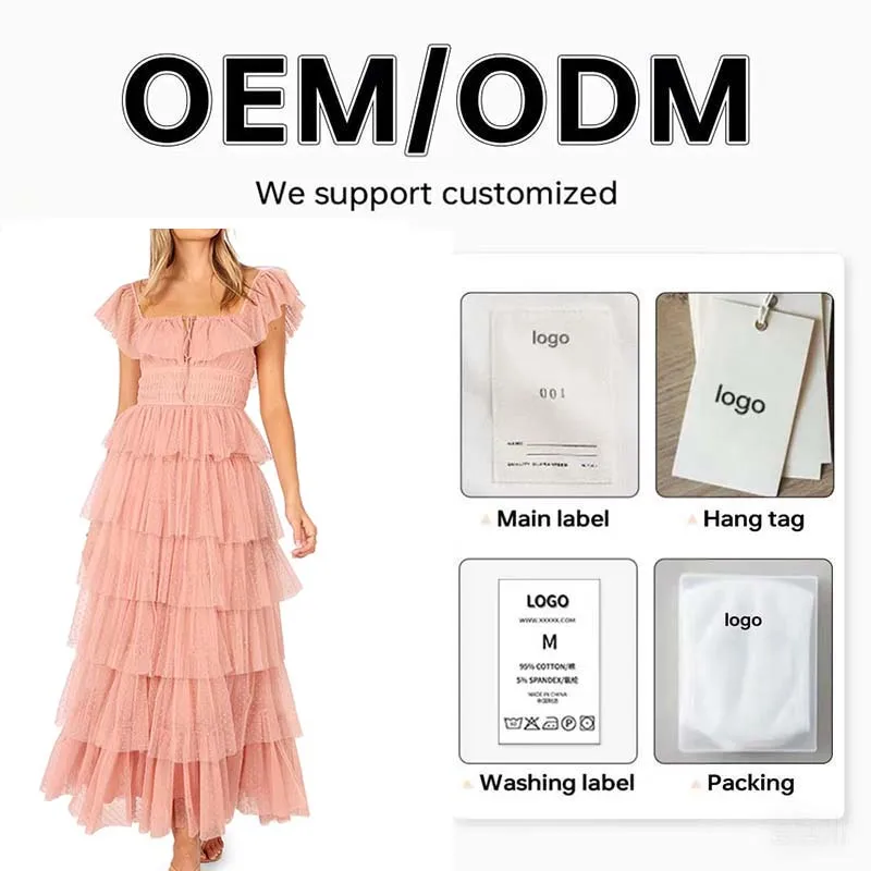 Party Style Lady Dress Solid Square Neck Fluttery Sleeves Dot Tulle Tiered Tiered Maxi Elegant Women's Dresses