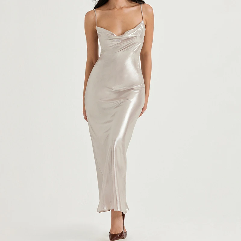 Fashion Lady Sliver Strapless Slim Women Elegant Long Sexy Party Club Dresses