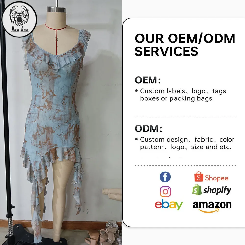 New Arrival Summer Ruffle Trim Backless Printing Floral Women Casual Sexy Mini Dresses
