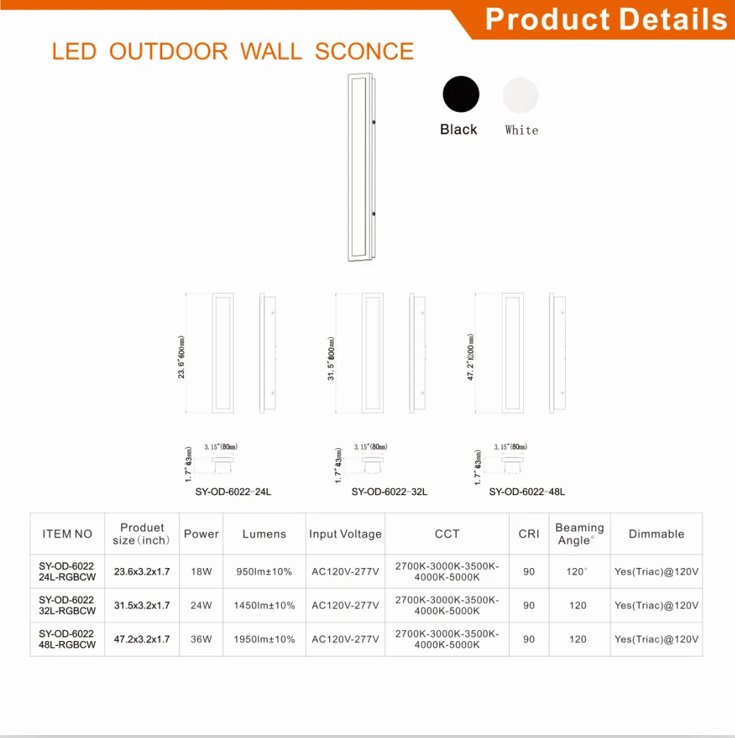 Factory Custom Tuya Smart Outdoor Lights Long Strip RGB Simple Style Wall Lamp Waterproof IP65 Grade Non-Yellowing Lampshade
